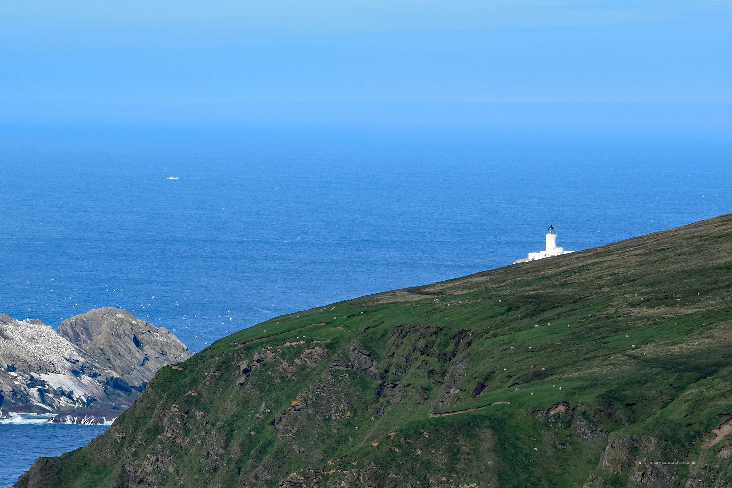 Von dort aus erkennt man gut das nördlichste Gebäude von Großbritannien, den Muckle-Flugga-Leuchtturm. Somit habe ich also nicht nur den nördlichsten Punkt auf dem britischen Festland bereist, sondern auch den nördlichsten Punkt des gesamten Vereinigten Königreichs.