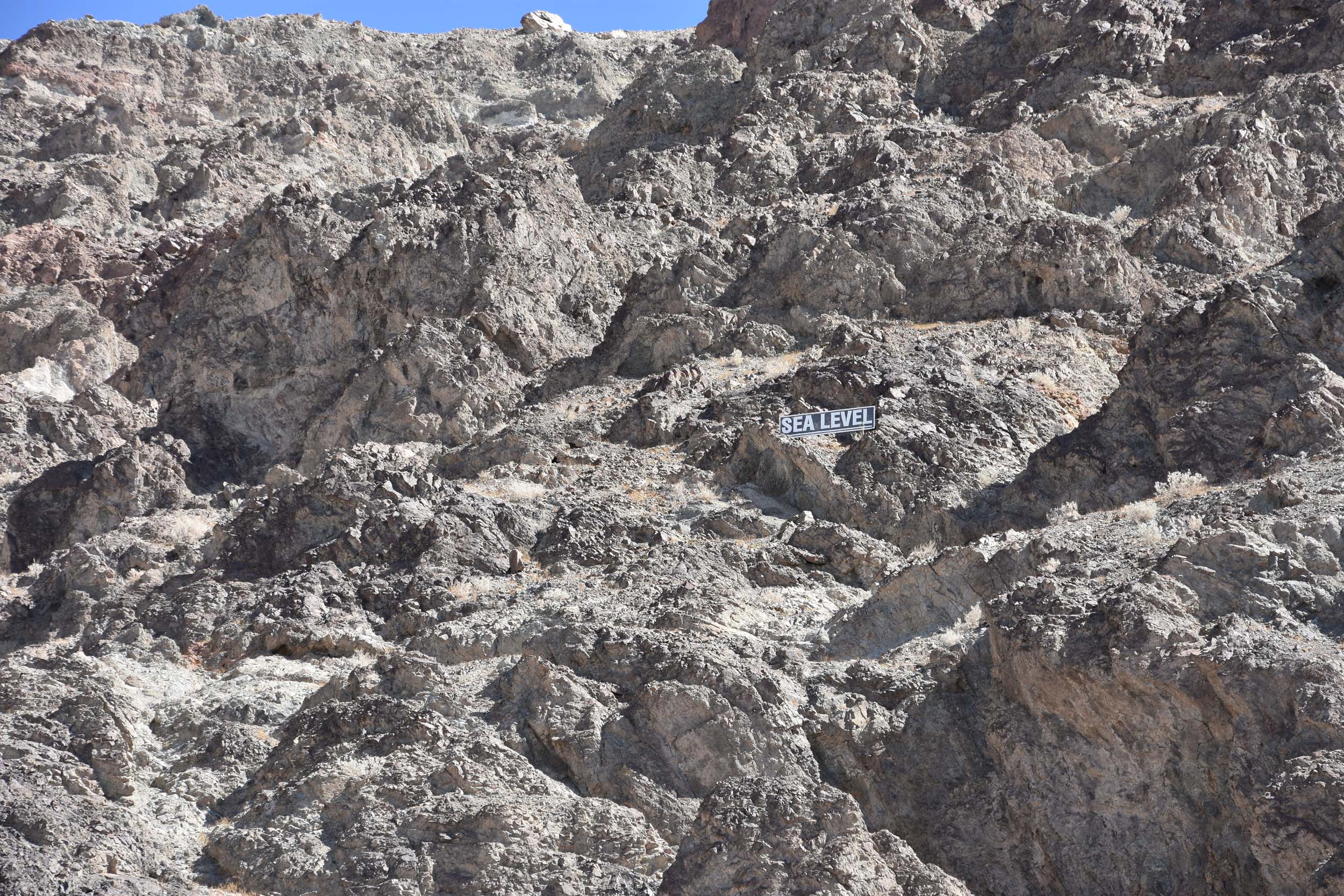Es hat uns dort extrem gut gefallen und wir fanden es natürlich wahnsinnig spannend, an einem Ort zu stehen, der 85,5 Meter unter dem Meeresspiegel liegt. Interessant ist dabei übrigens auch, dass es gleich an der Ostseite steil bergauf geht und zwar stolze 1.600 Höhenmeter. Und wenn man dort an der Felswand nach oben blickt, sieht man tatsächlich ein weiteres kleines Schild, das die Höhe des Meeeresspiegels angibt.