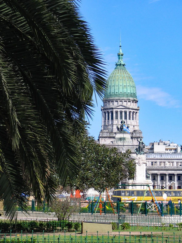 Die Aufnahme zeigt den Nationalkongress von Argentinien. Genau zwischen dem Kongressgebäude und meinem damaligen Standort befindet sich eine kleine Säule, die eben diesen Nullpunkt markiert. Er befindet sich zum Zeitpunkt der Aufnahme genau 100 Meter von mir entfernt. Das bedeutet, als ich nach dem Foto zum Nationalkongress ging, lief ich direkt an der Markierung vorbei. Vermutlich ist diese kleine Säule auch auf dem Foto, aber leider nicht erkennbar, weil irgendein Gebüsch vor dem Nullpunkt steht.