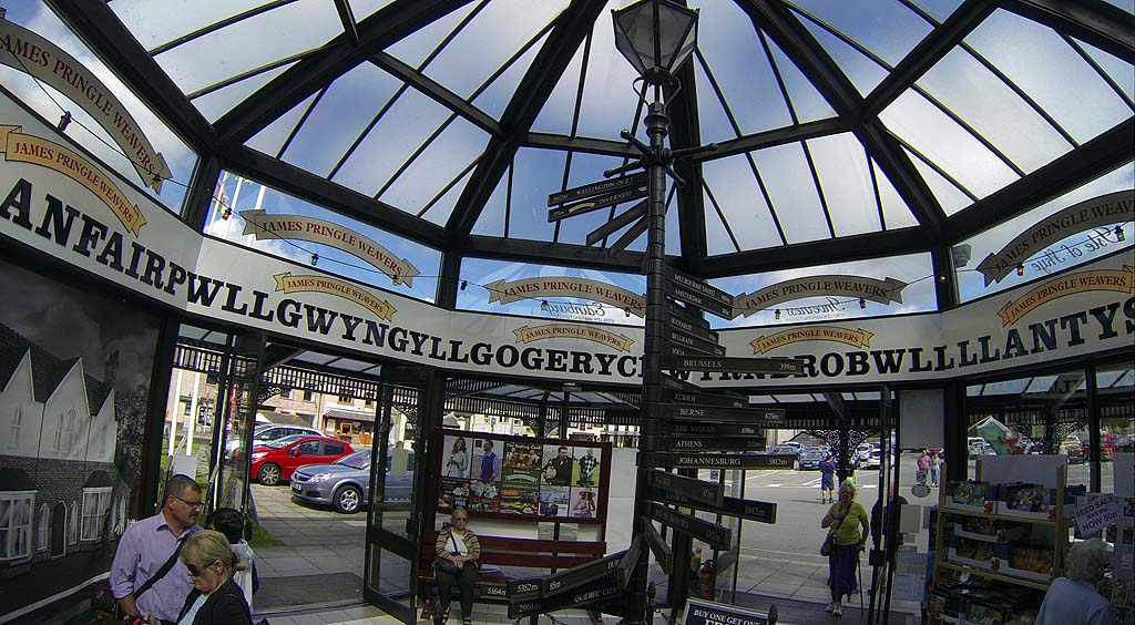 Außerdem steht der Name der walisischen Ortschaft auch an der Tür des Geschäfts, was man entweder nur von weitem oder mit extremen Weitwinkel fotografieren kann. Und weil dieser Name so schön ist, habe ich ihn auch gleich noch in meinem Blog verewigt.