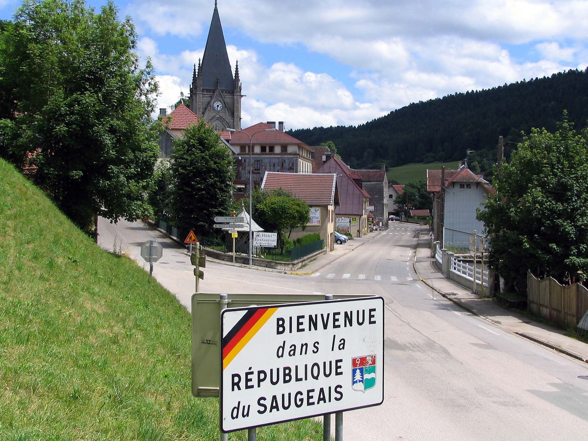 Bei der Freien Republik Saugeais handelt es sich um eine Mikronation im ostfranzösischen Département Doubs nahe der Grenze zur Schweiz. Ich bin eher zufällig darauf gestoßen, als ich mit dem Wohnmobil durch das Jura und damit durch den Mentbenoît fuhr, welcher die Hauptstadt dieser selbsternannten Republik ist. Bis auf das Ortsschild ist jedoch nichts mehr von der Mikronation zu erkennen – vermutlich weil sich die Tochter des Gründungspräsidenten nicht sonderlich um ihren Staat kümmert.