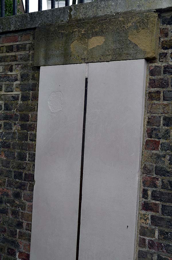 Außerhalb des Observatoriums ist ebenfalls eine Markierung an der Mauer angebracht. Aber diese ist eben auch nicht der „echte“ Nullmeridian. Aber er passte ganz gut, um ihn zu fotografieren.