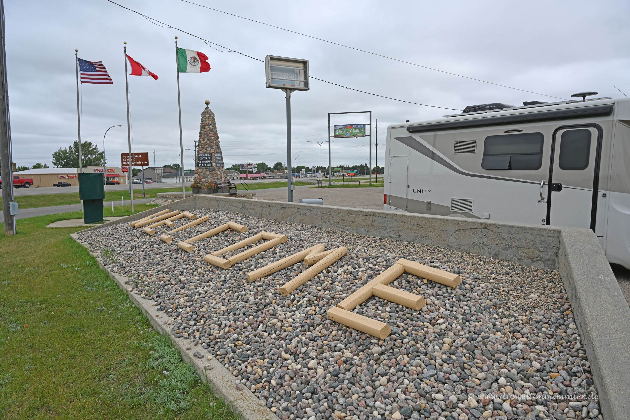 Seltsam das Ganze. Es ist also davon auszugehen, dass dieser geografische Mittelpunkt eher aus touristischen Gründen und nur symbolhaft aufgestellt wurde. Und siehe da, laut der englischsprachigen Wikipedia ist er auch gar nicht erwiesen. Vielmehr würde es sich nach einer Berechnungsmethode richtigerweise um den Ort Center ebenfalls in North Dakota handeln. Na, wenn der Name kein Zufall ist. Uns stört es nicht. Wir freuten uns, hier gewesen sein zu dürfen und haben den geografischen Mittelpunkt von Nordamerika vorerst abgehakt.