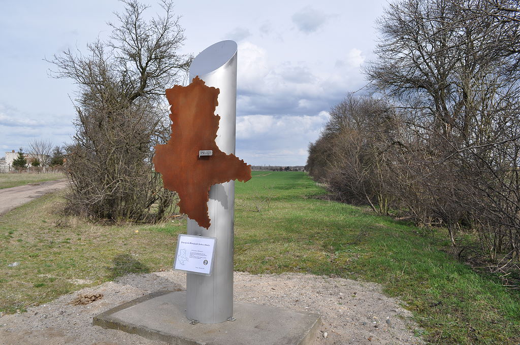 Die Entstehung dieser Markierung hat eine ganz besondere Geschichte. Ich hatte woanders vernommen, dass der damals selbstständige Ort Tornitz der Mittelpunkt von Sachsen-Anhalt sein soll und wandte mich an die damalige Bürgermeisterin mit der Frage, ob sie das wüsste und ob es im Ort einen Gedenkstein geben würde. Sie war von dieser Anfrage überrascht und verneinte. Doch gleichzeitig war sie daran interessiert, eine Stele aufzustellen für die ich eine entsprechende Vorlage geben durfte. So kam ich eher zufällig zu der Ehre, das Denkmal für den Mittelpunkt von Sachsen-Anhalt entworfen zu haben, obwohl dieser Punkt amtlich gar nicht korrekt vermessen wurde.
