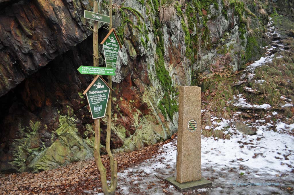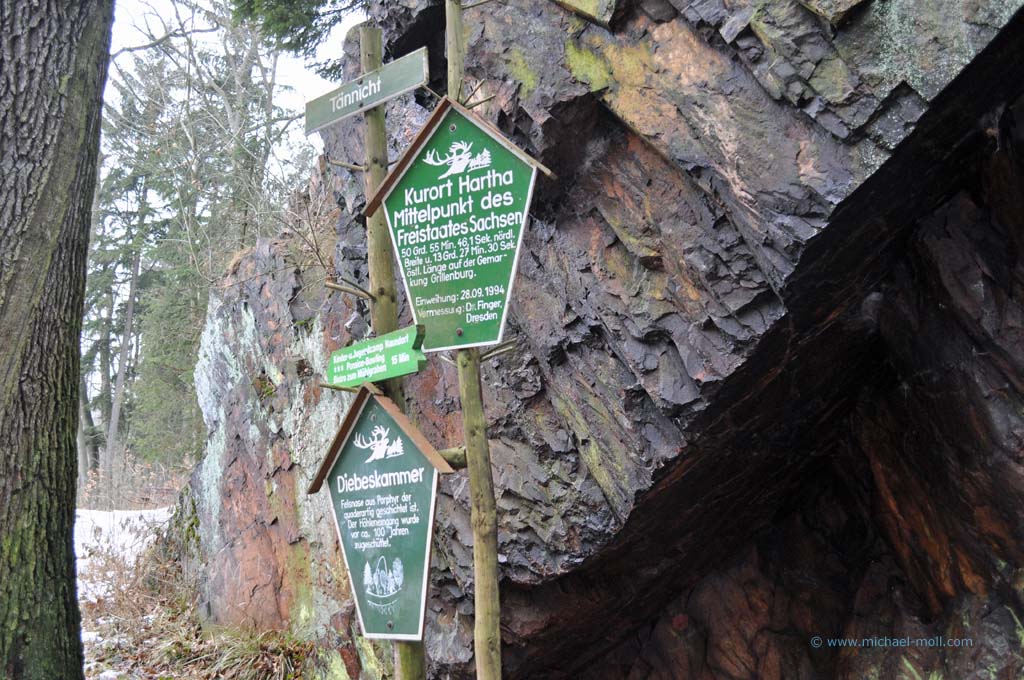 Doch es gibt noch ein weiteres geografisches Zentrumin Sachsen und für diesen Mittelpunkt brauchte ich zwei Anläufe. Erst versuchte ich, ihn nach einer Reise durch Polen zu besuchen. Das schlug jedoch fehl, weil ich auf dem Wanderweg vorzeitig umkehrte. Ich nahm an, ich wäre schon an dem Punkt vorbei und man hätte ihn demontiert, weil in Sachsen mittlerweile der oben beschriebene Punkt gültig wäre. Kurioserweise ist mir das von beiden Seiten aus passiert. Erst im Jahr darauf, bei einer Reise durch Sachsen, ging ich dann auch weit genug, um ihn zu erreichen. Dabei musste ich feststellen, dass ich im Vorjahr nur wenige Meter hätte weitergehen brauchen.