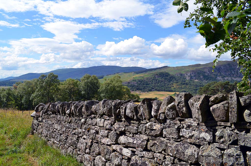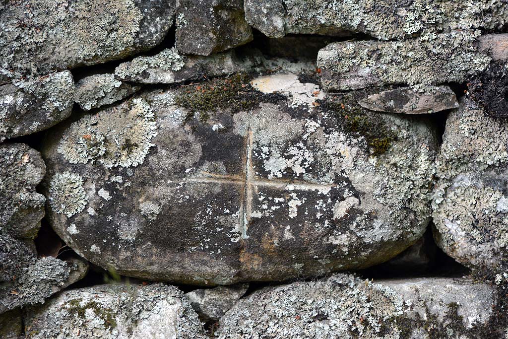 Daher musste ich an diesem Ort genauer suchen und nochmal im Internet forschen. So beendete ich meinen Reisetag auf dem nahe gelegenen Campingplatz und machte mich in den späten Abendstunden nochmal daran, den vermeintlichen Mittelpunkt aufzusuchen. Nämlich dann, als ich wusste, wonach ich eigentlich Ausschau halten müsste. Kurz vor dem erwähnten Denkmal befindet sich neben der kleinen Straße eine hüfthohe Steinmauer. Ausgerechnet einer dieser Steine ist mit einem Kreuz markiert. Und genau dieses Kreuz soll der geografische Mittelpunkt von Schottland sein. Irgendwo fand ich im Netz auch den Hinweis, dass man es nicht für nötig halte, das schottische Zentrum neu zu markieren.
