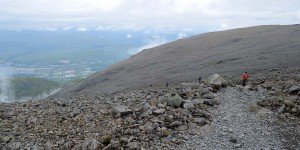 Nun, so war es auch bei mir, als ich den Berg bestieg. Als ich oben ankam, machte ich schnell ein Pingu-Foto und wanderte wieder abwärts, denn genau dann fing es auch noch an zu regnen. In der Regel ist man selten alleine, wenn man den Ben Nevis erwandert. Ganze Touristenströme folgen dem Ruf des Berges.