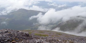Aus dem Tal Glen Nevis heraus gibt es einen wunderbar breiten Wanderweg, der im unteren Bereich mit Steinen ausgelegt ist und beinahe schon stufenförmig hinaufführt. Im mittleren Bereich ist der Weg nicht mehr ganz so steil, dafür wirklich sehr breit. Und erst im oberen Drittel wandert man auf Schotter die letzten Höhenmeter hinauf. Die Chance, den Ben Nevis ohne Nebel und ohne Wolken zu erklimmen, ist recht gering. Laut einer Infotafel im Besucherzentrum am Fuße des Bergs ist der höchste Berg von Großbritannien nur an zehn Tagen im Jahr nicht von Wolken verhüllt.