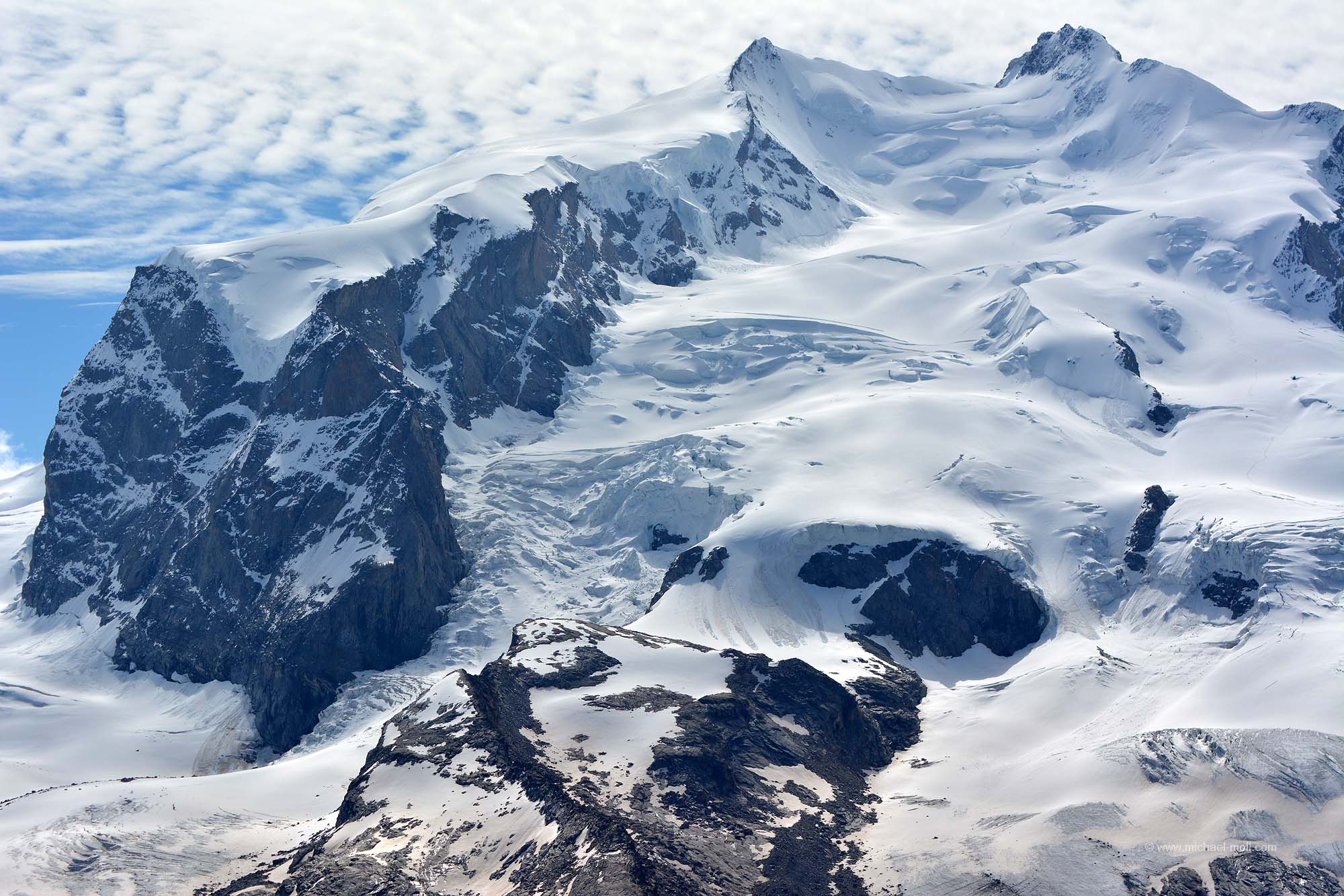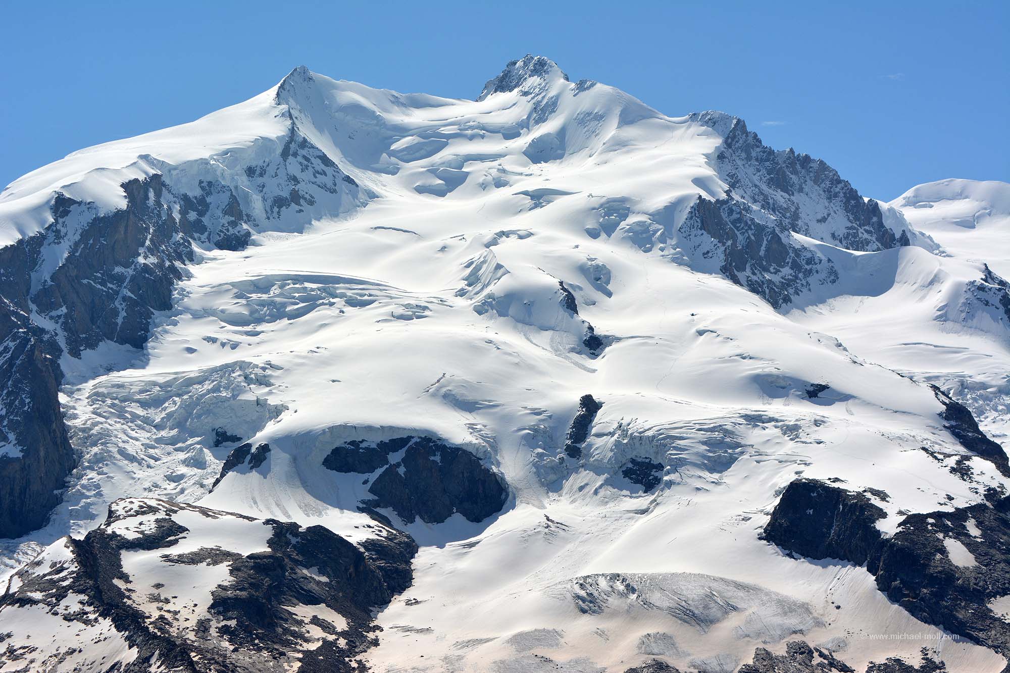 Ich gebe zu, ich habe noch nie auf der Dufourspitze gestanden. Und wahrscheinlich wird das so schnell auch nicht passieren. Ich bin eben kein Bergsteiger und habe bei Bergen dieser Größenordnung keine Erfahrungen. Aber ich habe das Umfeld des Berges bereist, sodass ich Details am Gipfel erkennen konnte. Das ist natürlich nichts besonderes, schon gar nicht, wenn der Aussichtspunkt leicht erreichbar ist. Aber auch andere höchste Punkte sind leicht erreichbar und werden als bezwungen bezeichnet. Wie auch immer, ich stehe dazu, dass ich den höchsten Berg der Schweiz nicht bezwungen habe, aber wenigstens in seiner unmittelbaren Nähe war. Daher gibt es jetzt einige Bilder, die ich von ihr gemacht habe: