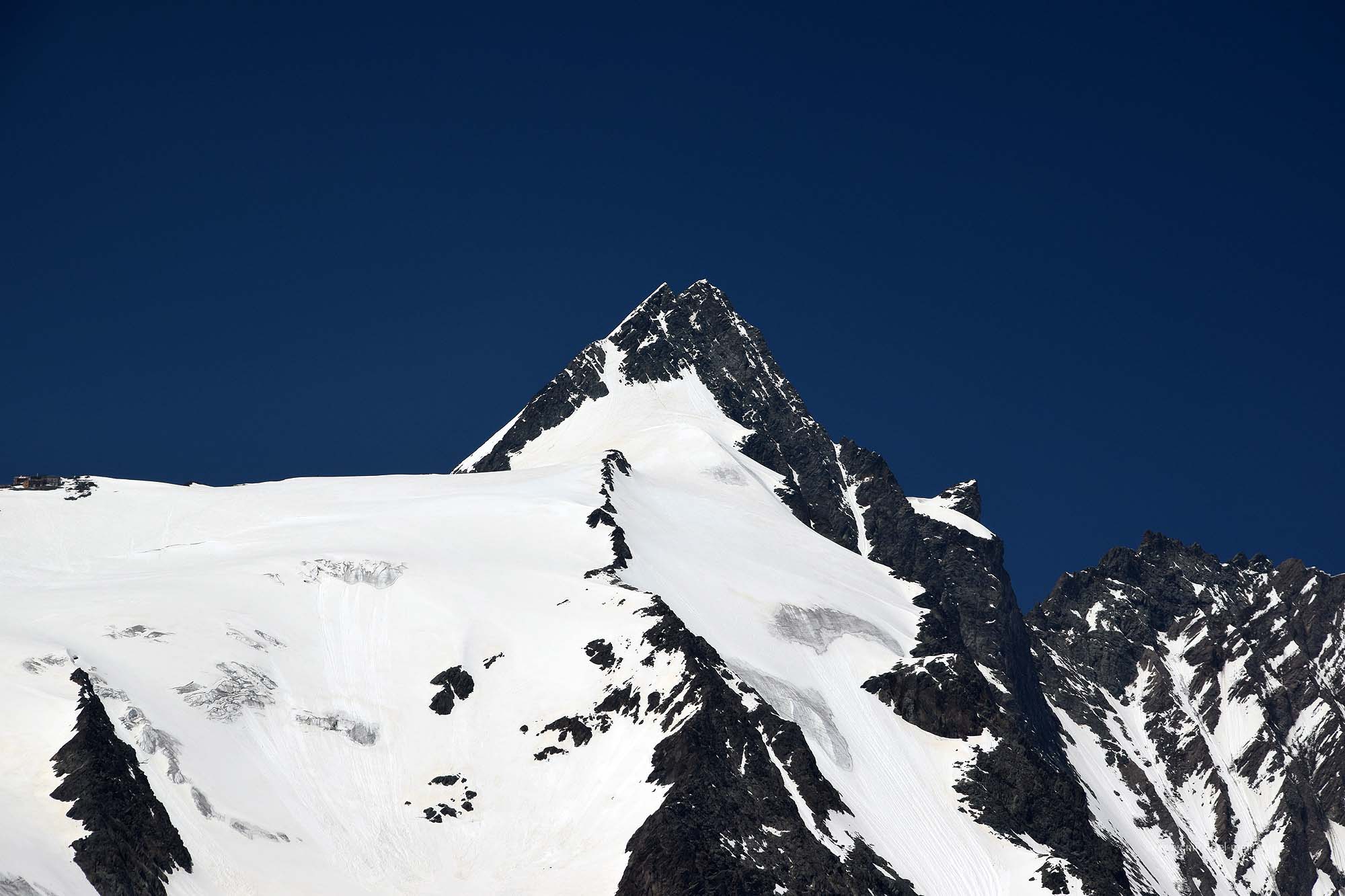 Ich gebe zu, ich habe noch nie auf dem Großglockner gestanden. Und wahrscheinlich wird das so schnell auch nicht passieren. Ich bin eben kein Bergsteiger und habe bei Bergen dieser Größenordnung keine Erfahrungen. Aber ich habe das Umfeld des Berges bereist, sodass ich Details am Gipfel erkennen konnte. Das ist natürlich nichts besonderes, schon gar nicht, wenn der Aussichtspunkt leicht erreichbar ist. Aber auch andere höchste Punkte sind leicht erreichbar und werden als bezwungen bezeichnet. Wie auch immer, ich stehe dazu, dass ich den höchsten Berg von Österreich nicht bezwungen habe, aber wenigstens in seiner unmittelbaren Nähe war. Daher gibt es jetzt einige Bilder, die ich von ihm gemacht habe: