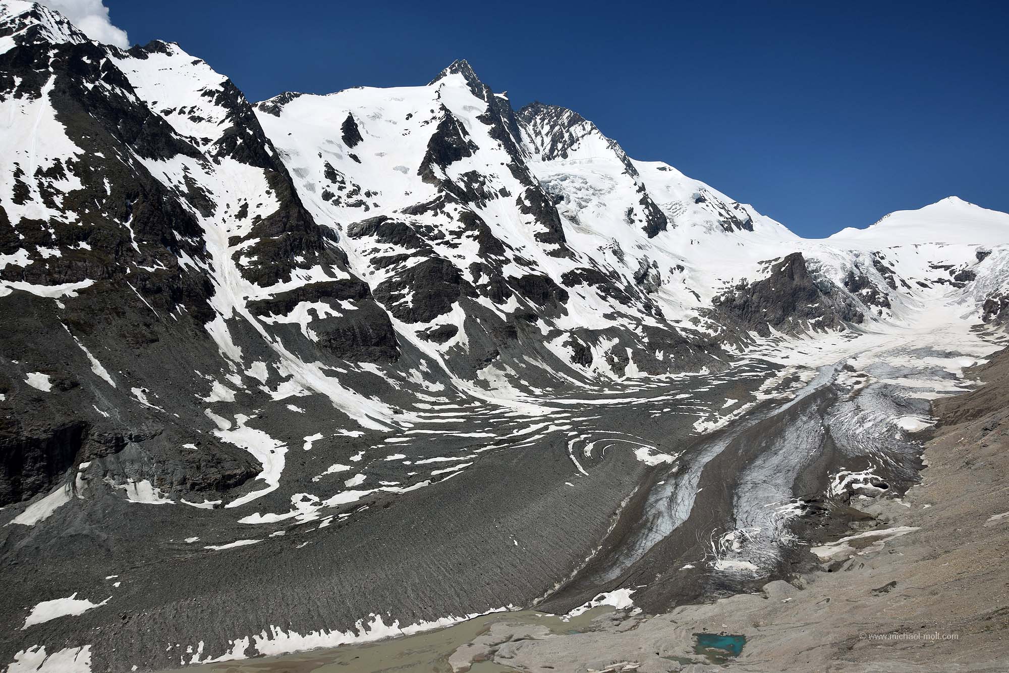 Zu erreichen ist er übrigens relativ einfach über die Großglockner-Hochalpenstraße, was ich während der Wohnmobilreise durch die Alpen tat. Dort fährt man bis zur Kaiser-Franz-Josefs-Höhe, wo eben nicht nur ein Parkplatz, sondern auch ein schöner Aussichtspunkt wartet. Zu sehen sind neben dem 2.504 Meter hohen Berg auch noch der benachbarte Gletscher namens Pasterze und mit etwas Glück auch ganz viele Murmeltiere.