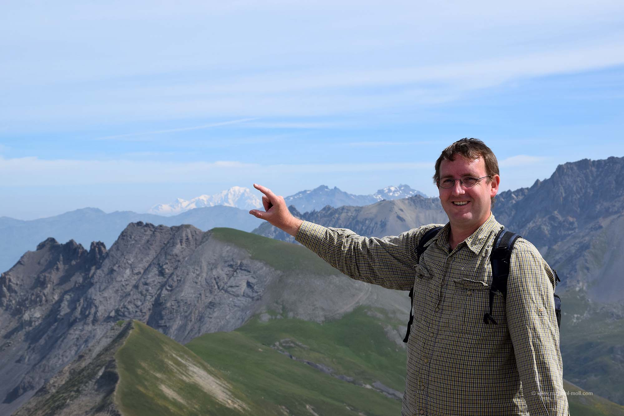 Mit dem Mont Blanc de Courmayeur kann ich es aber wirklich kurz machen. Denn von allen höchsten Bergen, die ich zwar nicht bestiegen, aber wenigstens gesehen habe, war dieser auch noch am weitesten weg. Ich habe den höchsten Berg von Italien, weshalb er eigentlich Monte Bianco heißt, vom französischen Col du Galibier aus gesehen. Dort kann man nämlich einen wunderbaren Rundumblick genießen, der seinesgleichen sucht. Und man hat eben auch einen tollen Blick auf das Mont-Blanc-Massiv, wo man mit dem Mont Blanc den höchsten Berg Europas sieht. Lustigerweise wusste ich aber zu dem Zeitpunkt zwei Dinge nicht. Und zwar erstens, dass sich das Massiv stolze 90 Kilometer entfernt befindet, was für die gute Fernsicht spricht und ich erst später an Hand von Google Earth nachgemessen hatte. Und zweitens hatte ich keine Ahnung, dass ich mit dem Mont Blanc nicht nur auf den höchsten Berg Frankreichs blicke, sondern eben auch auf den höchsten Berg Italiens, der sich auf dem Bild nur ganz geringfügig weiter rechts befindet. Allerdings ist man ohnehin uneins, ob dieser Berg mit seinen 4.478 Metern Höhe tatsächlich ein höchster Berg ist. Die Italiener beanspruchen den Mont Blanc ebenfalls für sich, weshalb eigentlich dieser der höchste Berg Italiens wäre. Aber die Franzosen geben an, dass der Grenzverlauf eben nicht genau auf dem Gipfel stattfindet. Demnach ist aus französischer Sicht der Monte Bianco der höchste Berg Italiens.