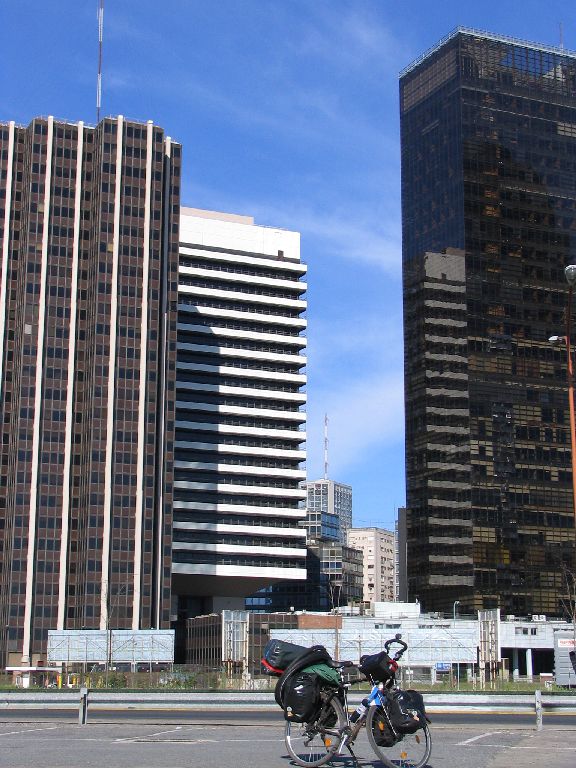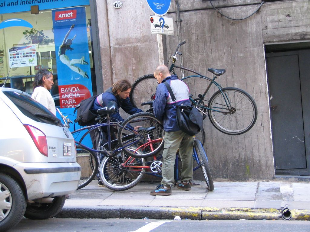 Mit dem Sonnenaufgang erreichen wir Buenos Aires, doch es dauert noch über eine Stunde, bis der Bus am „Retiro“, dem Busbahnhof ankommt. Wir zahlen brav die Frachtgebühr für die Räder und so stehen wir nun mitten in dieser Millionenmetropole zwischen zahlreichen hektischen Menschen, die sich auf über 70 (!) Bussteigen verteilen. Die Dimension des Bahnhofs ist unglaublich und erinnert in seinen Ausmaßen eher an einen internationalen Flughafen.