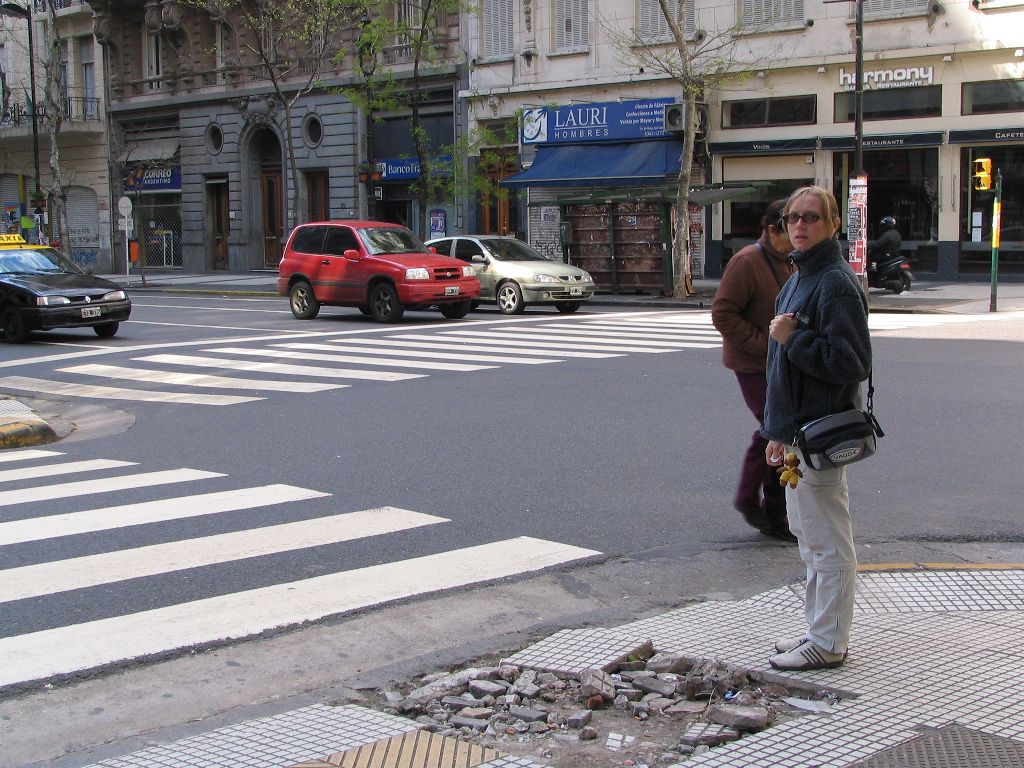 Eine andere Besorgung wollen wir in einem Elektrogeschäft machen. Da wir im Hostel zum ersten Mal in Argentinien Batterien laden wollen, doch kein Strom aus der Steckdose in das Ladegerät fließt, ist es nun an der Zeit, einen Spannungswandler zu kaufen, der aus 110 Volt rund das Doppelte, nämlich 220 Volt herstellt.