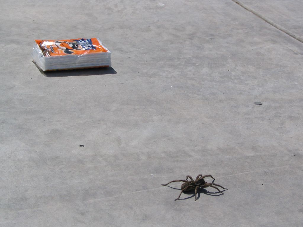 Apropos kommen, Moni erscheint auch wieder, wir schieben alles zwei Meter weiter, packen dort zusammen und trotten von dannen. Da wir in den nächsten Wochen noch öfter im Busbahnhof von Puerto Madryn sein werden, können wir mehrmals beobachten, dass dieses Röntgengerät-Rumgeschiebe ein festes Ritual bei exakt diesen vier Zöllnern ist. Wird es nicht benutzt, so schiebt man es brav mit vier Mann wieder an seinen festen Platz, ganze 10 m weiter und überstülpt es mit einer Plane – jeden Tag.