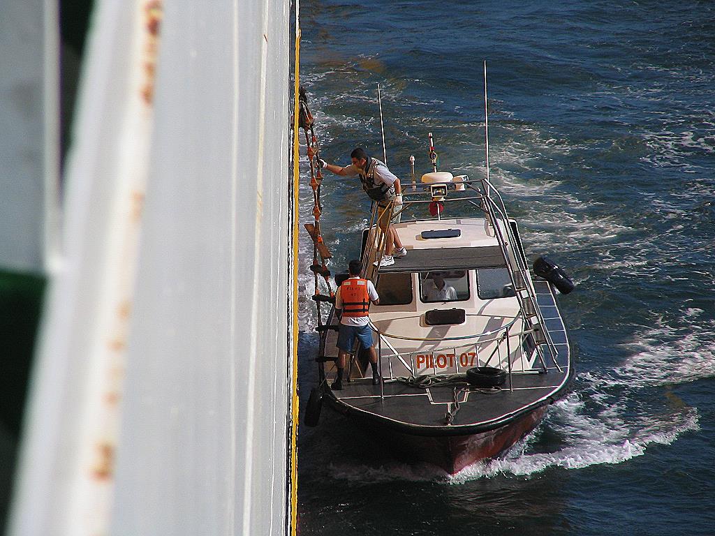 Wir umrundeten den Zuckerhut und zum Vorschein kamen noch mehr Hochhäuser, ein Flughafen, dessen Landebahn mitten im Hafen liegt und eine gigantische Brücke unter der wir hindurch mussten. Zwischen vielen rostigen Kähnen warfen wir den Anker aus und warteten bis wir anlegen konnten. Der Steward teilte uns mit, dass das Dinner auf Anordnung des Kapitäns eine Viertelstunde früher eingenommen wird. Wir gingen also pünktlich zur Offiziersmesse und warteten brav auf den Kapitän. Nachdem wir 15 Minuten warteten, also genau bis zur regulären Essenszeit, gingen die beiden Stewards zum Kapitän und baten um Erlaubnis servieren zu dürfen, denn dieser kam letztendlich gar nicht. Später legten wir am Kai an, doch da es schon spät und dunkel war und die Stadt sowieso einen für uns abschreckenden Eindruck machte, gingen wir schlafen.