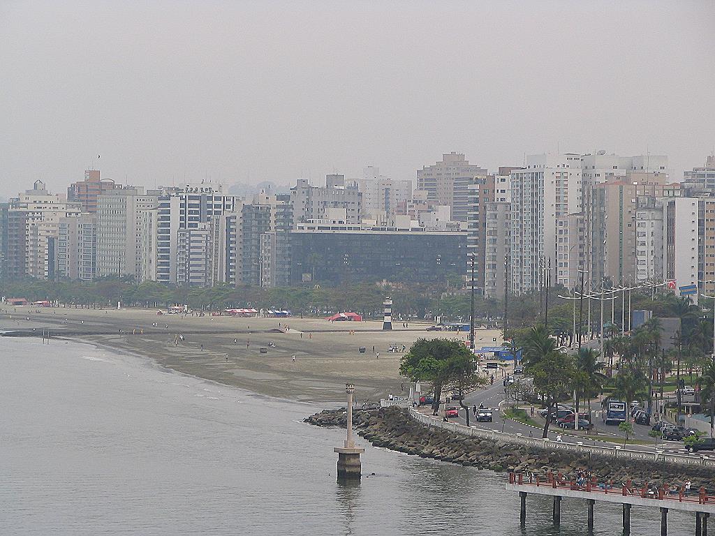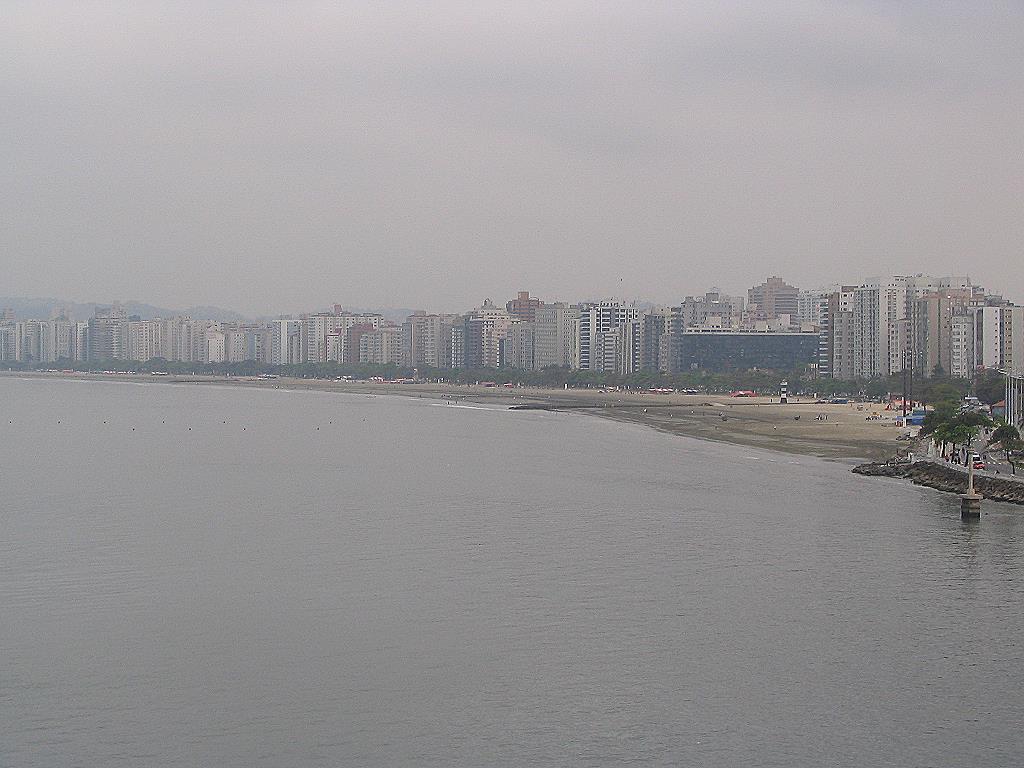 Nach dem Frühstück legten wir ab und steuerten wieder Richtung Süden. Die Logik der Reederei verstehe ich zwar nicht ganz, aber es soll mir egal sein. Gestern fuhren wir gewissermaßen an Santos bei Sao Paulo vorbei, um heute die 300 km zurück zu fahren. Gegen Mittag, es war heute sehr warm, begaben wir uns auf das Oberdeck, wo man direkt neben der Brücke steht. Wir schauten vorsichtig hinein und sahen dort den 2. Maat namens Mantilla und einen weiteren philippinischen Matrosen, die beide sehr nett sind. Nur deswegen betraten wir die Brücke. In Anwesenheit des Kapitäns hätte Zuckerhutich gerne verzichtet. Mantilla führte und herum und zeigte uns, was wir wollten. Von der ”Marfret Normandie” wussten wir ja bereits, was uns am meisten interessierte: ETA, die Abkürzung für die voraussichtliche Ankunftszeit. Und die besagte, dass wir bei der momentanen Geschwindigkeit von 20 Knoten (36 km/h) Santos heute um 18.18 Uhr erreichen werden. Und so war es denn auch. Der dritte und letzte brasilianische Hafen war ebenfalls wieder von unzähligen Hochhäusern gespickt. Wenn dies nur eine ”kleine” Stadt bei Sao Paulo ist, wie sieht dann erst Sao Paulo selber aus? Ich will es gar nicht wissen und freue mich sehr auf unser gemütliches und idyllisches Europa. Doch zuvor schauen wir wieder zu, wie zahlreiche Autos im Bauch des Schiffes verschwinden und wie direkt neben dem Hafen die Menschen in Slums leben müssen.