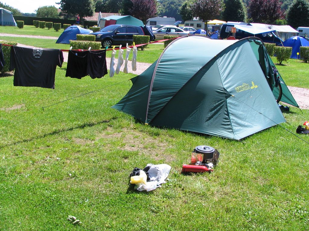 Lustig sind auch die Holländer, die recht früh kommen und noch eine große Auswahl an Parzellen haben. Nach 15minütiger Besichtigungszeit bleiben drei Parzellen in der engeren Auswahl. Nach weiteren 10 Minuten und der Feststellung, dass keine von ihnen so recht “authentisch” sei, entscheiden sie sich für unsere Nachbarparzelle. Unter unseren streng beaufsichtigenden Blicken bauen sie schließlich ihr Zelt auf, was nochmals doppelt so viel Zeit kostet.