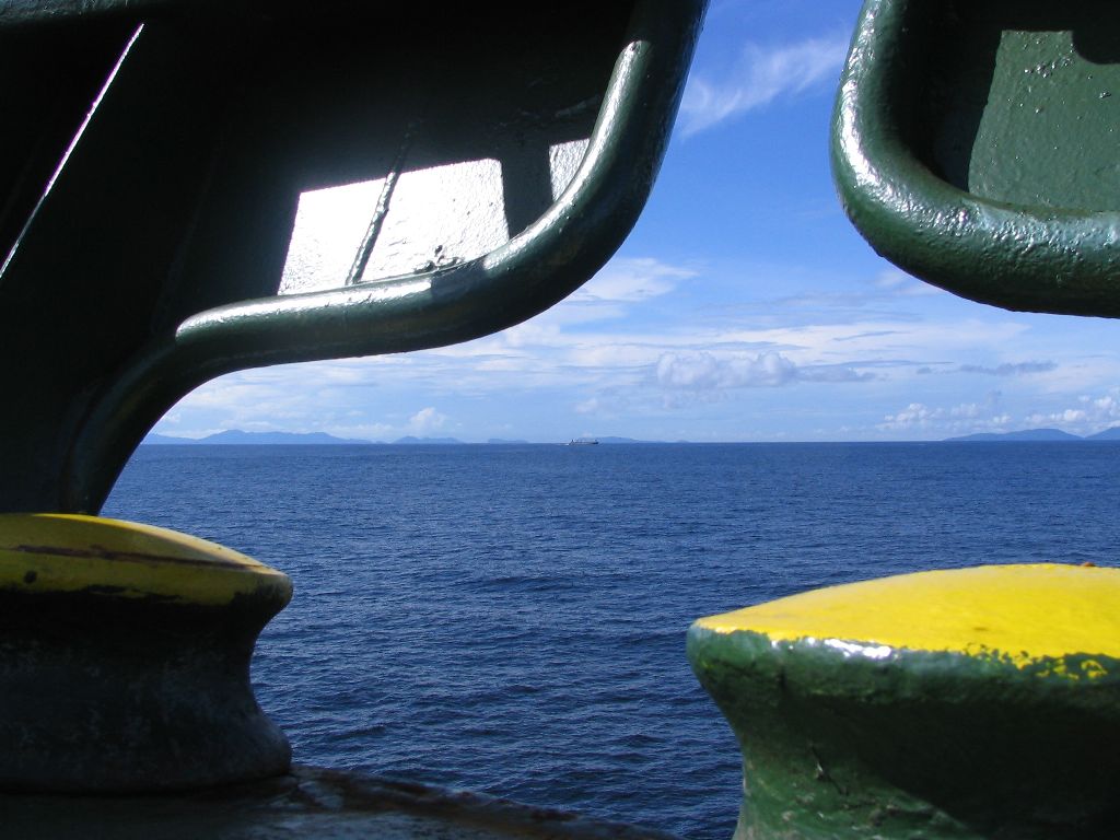 5. Tag Am Frühstückstisch bat uns der Kapitän zwei Tabletten als Prophylaxe gegen Malaria Kaktuseinzunehmen, was aus der Schweiz gleich wieder mit Verschwörungstheorien kommentiert wurde: “Alle Medikamente sind Potenzmittel”. Der Kapitän schaute etwas verwirrt, ich wandte mich meinem gebratenen Schinken mit Rührei zu und dachte an die Engländer vom Campingplatz in Étretat. Anschließend reinigten Moni und ich endlich mal das Innenzelt, welches wir demnächst mit Antimückenmittel präparieren wollen. Danach gingen wir auf Deck und setzen uns in die Liegestühle, saßen in der Sonne, schrieben, lasen und schauten auf das schön blau leuchtende endlose Meer.