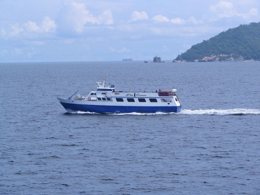 Da es mittlerweile wärmer wurde, um nicht zu sagen ziemlich warm sogar, hüpfte ich heute zum ersten Mal in die Badehose und ging schwimmen. Nein, ich musste nicht dem Schiff hinterher kraulen, sondern benutzte das 3×2 Meter große Poolbecken. Das darin enthaltene Meerwasser beherbergt übrigens 37 kg Salz. Zudem trieben wir Sport, indem wir in die 6. Etage hochliefen und noch unsere Regenjacken wuschen. Moni ging wieder runter und ich mutzte die Gelegenheit, erneut auf die Brücke zu gehen. Zaghaft, um ja niemanden zu stören oder zu erschrecken schlich ich die Stufen hoch und stand mitten auf der Kommandostation – alleine! Ich lugte vorsichtig um die Ecke, doch niemand zu sehen. Lauter blinkende Knöpfchen, ein Radarschirm auf dem sich ständig das Bild erneuert und ein führerloses Schiff, das mit der sagenhaften Geschwindigkeit von 29Karibik km/h auf die amerikanische Küste zurast… Doch hinter einer Ecke tat sich was. Ein älterer Herr schnippelt mit der Schere irgendwelche Papierdinge aus und fragt mich nett, ob er was für mich tun könnte, gerade so als ob ich ein Möbelgeschäft betreten hätte. 20 Minuten später sehe ich mich imstande das Schiff selber steuern zu können. Man muss nämlich gar nichts machen. Man gibt die Zielkoordinaten ein und passt ein wenig auf, dass keine Insel in den Weg springt oder ein Wal Suizid begehen will. Geht ganz einfach. Er zeigte mir zahlreiche Instrumente und den Radarschirm .Besonders interessant fand ich das Gerät, das nach dem 11. September 2001 Pflicht wurde. Es zeigt nämlich alle Informationen der Schiffe an, die in der Nähe sind. So war in rund 14 Seemeilen (1 Meile = 1,8 km), also ca. 25 km ein Frachter zu sehen und das Gerät zeigte über diesen Frachter den Namen, die Länge, den Zielort und vieles andere an. Später versuchten Moni und ich uns an unserem zweiten Puzzle. Das erste haben wir aufgegeben. Zum Glück muss man sagen, wie hätten wir das halbfertige Puzzle von der einen in die andere Kabine gebracht? In der kommenden Nacht werden wir zum vierten Mal die Uhr um eine Stunde zurück stellen. Angekündigt wird dies übrigens immer mit einem Aushang am schwarzen Brett. Blöd nur, wenn man davon nichts mitbekommt, so wie es zwei Personen vorgestern ergangen ist, die dann gestern am Frühstückstisch eine Stunde zu früh da waren. Es waren ausgerechnet der Kapitän und seine Frau! Heute erklärte er uns, dass irgendjemand die Order willkürlich heraus gab, ohne dass der Kapitän davon etwas erfuhr. 7. Tag Morgens gab es Apfelpfannkuchen zum Frühstück. Man muss uns angesehen haben, wie gut er uns schmeckt, denn der Steward fragte, ob wir noch einen haben wollen. Ein lautes ”JA” ertönte über den Ozean, sonst werden wir nie gefragt, ob wir noch einen Nachschlag haben möchten. Mit der Kamera bewaffnet spielten wir heute Piraten und stürmten die Brücke. Dort machten wir ein paar Fotos und kündigten an, morgen mit Pingu zurück zu kommen. Ansonsten passierte heute nicht viel, außer dass unser Thermometer heute Morgen um 11 Uhr in der Sonne auf 48 Grad kletterte. Wir nähern uns den Tropen. Nachmittags kühlte es sich auf etwas über 30 Grad ab. Seit ein paar Tagen läuft im Wohnhaus die Klimaanlage und so haben wir in der Kabine 22 Grad, die sich eiskalt anfühlen. Da heute nicht sonderlich viel passierte und wir den Tag mit Puzzeln und lesen verbrachten mal ein Wort zu etwas allgemeinerem: Mehrfach konnten wir schon sehen, wie an Bord der Müll entsorgt wird. Leider ist es immer noch so, dass der Abfall einfach nach hinten über Bord geworfen wird. Wenn man bedenkt, dass dies auf jedem Schiff getan wird, dann wundert man sich nicht, dass ab und zu irgendwelche Dinge am Schiff vorbeischwimmen. Es ist wirklich erstaunlich, das Meer ist so weit, groß und scheinbar endlos, doch trotzdem sieht man immer wieder Müll auf der Wasseroberfläche. (Nachtrag: Auf unserer zweiten Frachtschiffreise haben wir gelernt, dass es Regelungen gibt, welche Art von Abfall in welchen Regionen über Bord geworfen werden darf, z.B. Plastik nie, Essensreste außerhalb von 3 Seemeilen vom Festland entfernt).