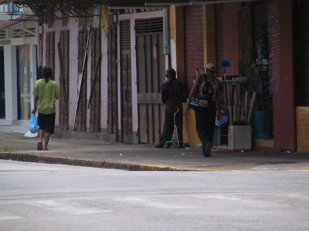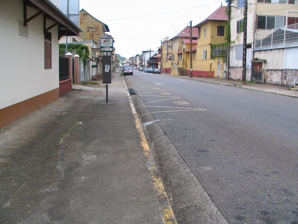 16. Tag Trotz Uhrumstellung und langer Nacht schafften wir es pünktlich zum Frühstück. Anschließend imprägnierten wir auch unsere Kleidung, nahmen die erste von unseren Malariatabletten und ich genoss noch einmal 2 Stunden lang das warme Wasser im Pool. Am Mittag kam etwas Wehmut auf, denn wir fingen an, unsere Sachen zu packen und unsere Kabine aufzuräumen. Wie oft haben wir das Geschaukel und Gewackel verflucht, doch jetzt ist es schade, dass es dem Ende der Schifffahrt zugeht. 17. Tag “Wir sind in Schweden”, sagte ich zu Moni. Das Schiff befindet sich im Hafen und der wiederum in einem Fluss. Auf der gegenüberliegenden Seite sieht man Bäume, mehr nicht. Nur Bäume. Als ich morgens so langsam meine Augen ganz öffne und die Brille aufsetze entpuppt sich das gesichtete Schweden als tropischer Regenwald. Es war also nur eine Wunschvorstellung…Leere Straßen in Cayenne Nach unserm letzten Frühstück holen wir mit dem Steward die Fahrräder aus dem Bauch des Schiffes und betreten zum ersten Mal das Festland von Südamerika. Willkommen in Französisch-Guayana. Da das Schiff morgens um 4 Uhr anlegte, schlief fast die gesamte Crew bei unserer Abfahrt. Dem wachhabenden Offizier teilten wir mit, dass wir am darauf folgenden Tag kurz vorbei schauen werden, um uns zu verabschieden, denn der Frachter fährt erst in drei Tagen weiter. Schon beim Bepacken der Fahrräder gerieten wir wegen des tropischen Wetters ins Schwitzen und mein Hemd war klitschnass, bevor wir überhaupt losgeradelt sind. 12 km sind es von dem kleinen Hafengelände bis in die Hauptstadt Cayenne. Also keine wirklich weite Strecke, schon gar nicht über eine schön asphaltierte Straße, doch bereits nach 8 km wünschte ich mir ein anderes Fortbewegungsmittel herbei. Nach zwei Wochen Faulenzen auf dem Schiff plötzlich körperliche Betätigung in den Tropen – mörderisch. In Cayenne suchten wir sehr lange nach einer günstigen Unterkunft. Das erste Hotel kostete 70 €, das zweite 60 € und erst im dritten und wohl letztem Hotel der Stadt wurden wir fündig: 30 € ohne Klimaanlage und mit einer kaputten Plexiglasscheibe als Fenster. Diese dichteten wir erst einmal mit Servietten und Tape ab und dann erholten wir uns. Als wir an dem Hotel ankamen, stand ich kurz vor einem Kreislaufkollaps und schüttete Unmengen Wasser in mich hinein, nur damit dieses aus allen möglichen Hautporen wieder heraus gesprudelt kommt.