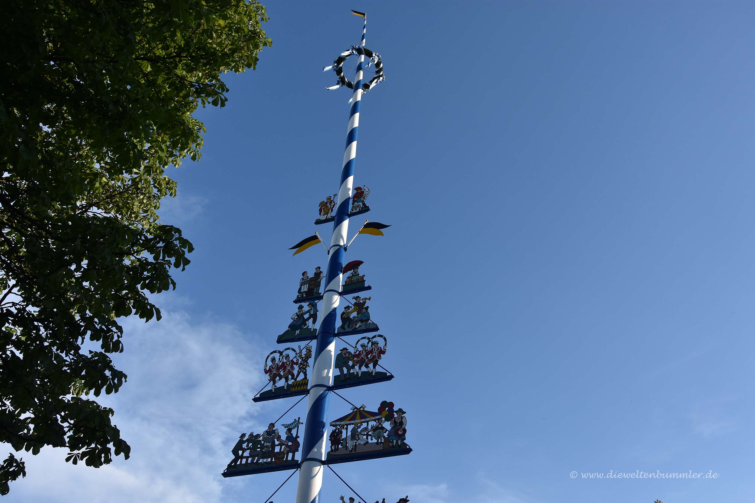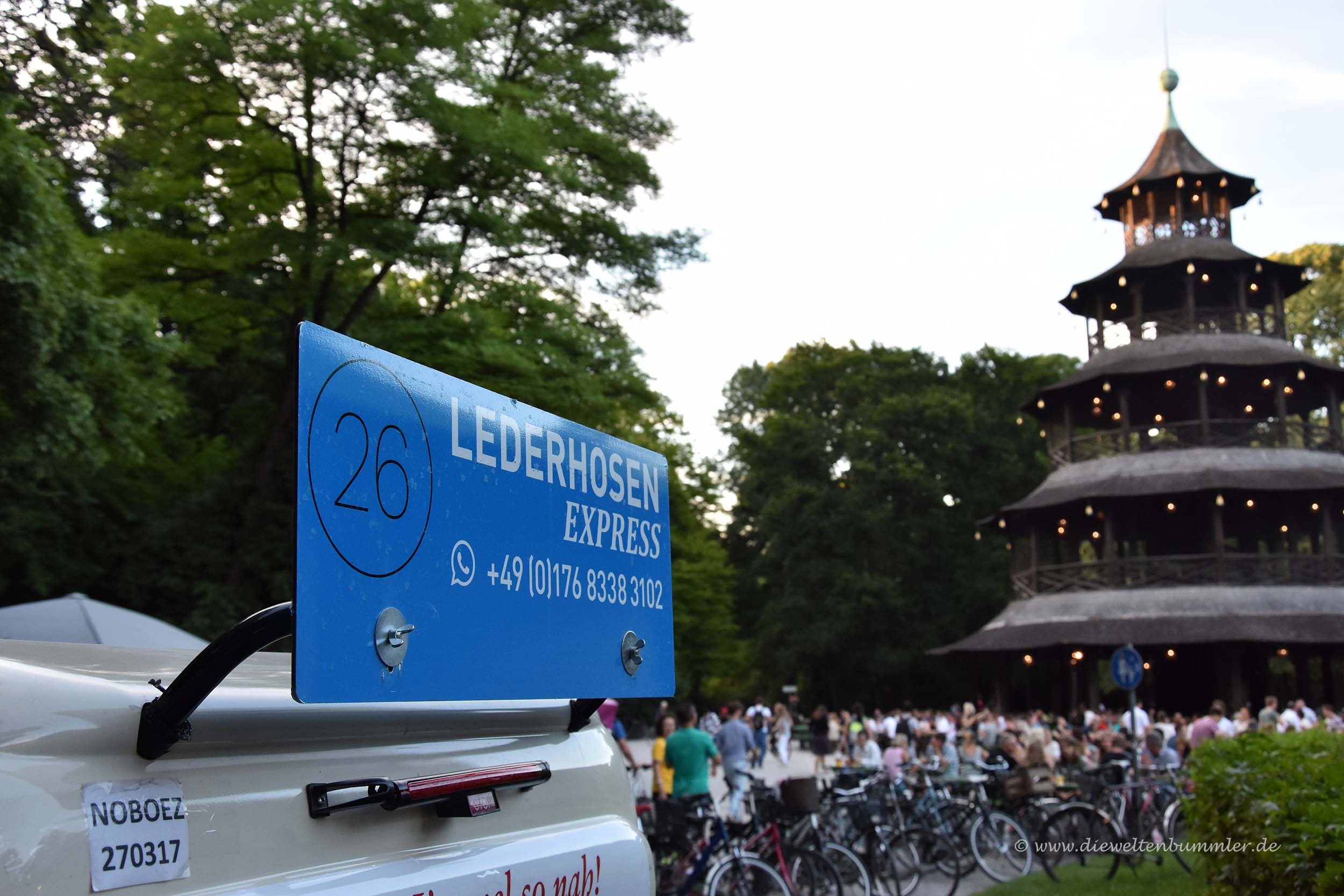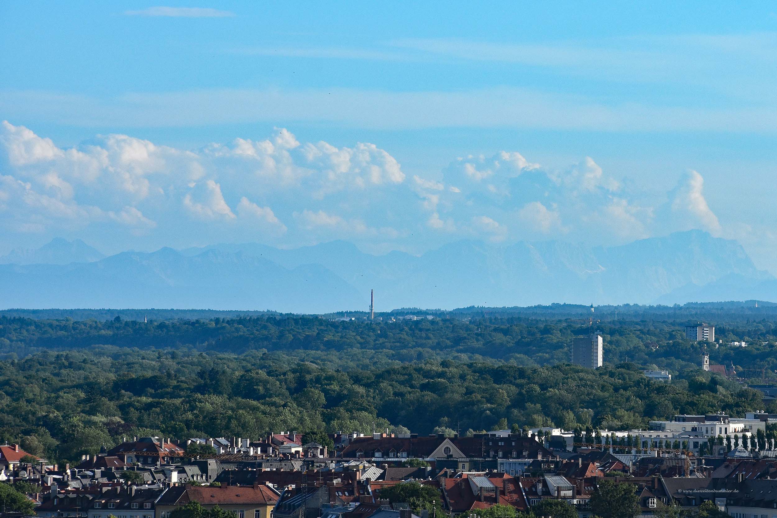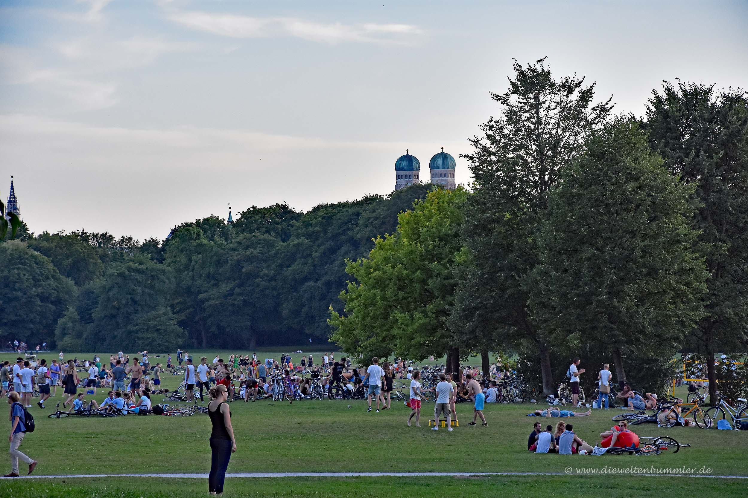Das waren immerhin knappe 90 Kilometer Luftlinie bis zur Zugspitze. Alleine dafür hatte sich schon der Aufstieg gelohnt. Über den Viktualienmarkt schlenderten wir zur Maximilianstraße und an der Feldherrnhalle vorbei, um mit dem Bus in Richtung Englischer Garten zu fahren.