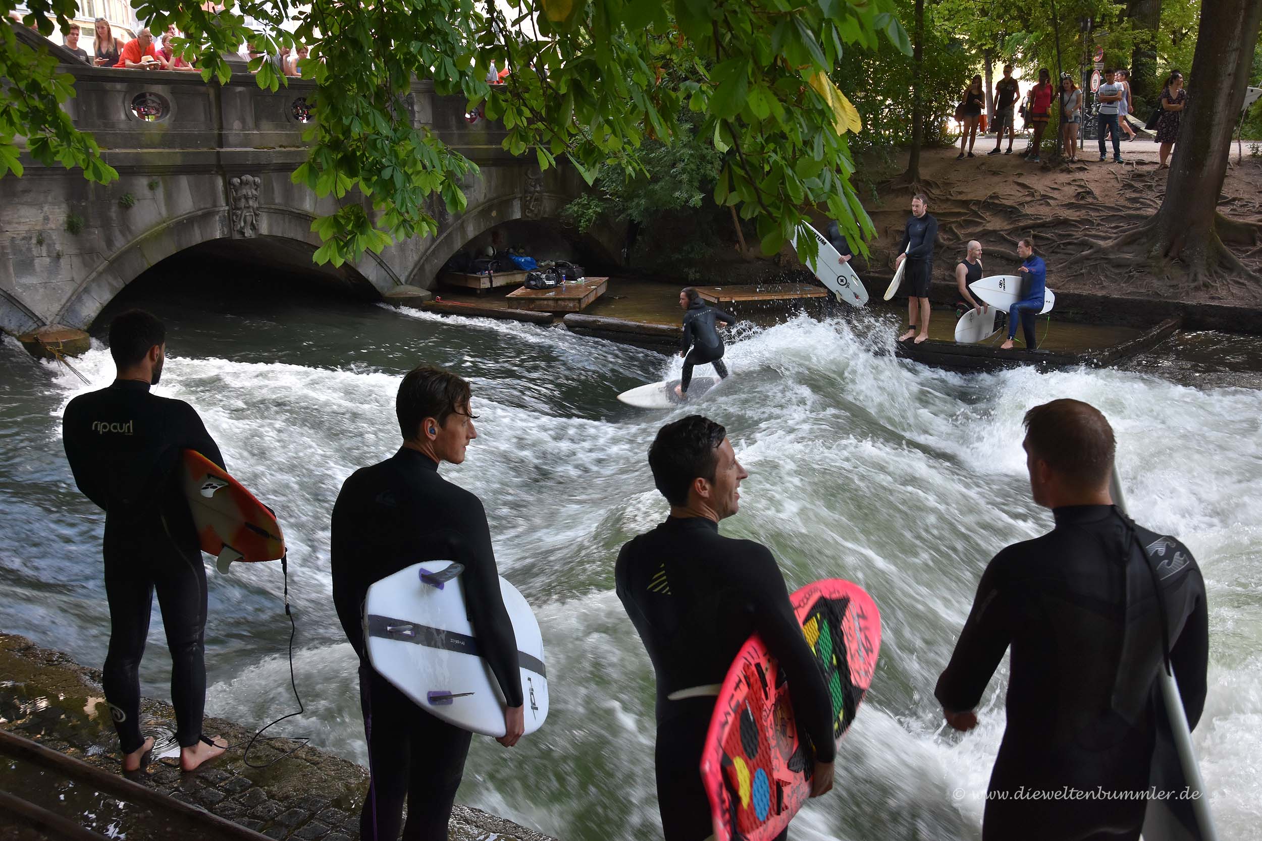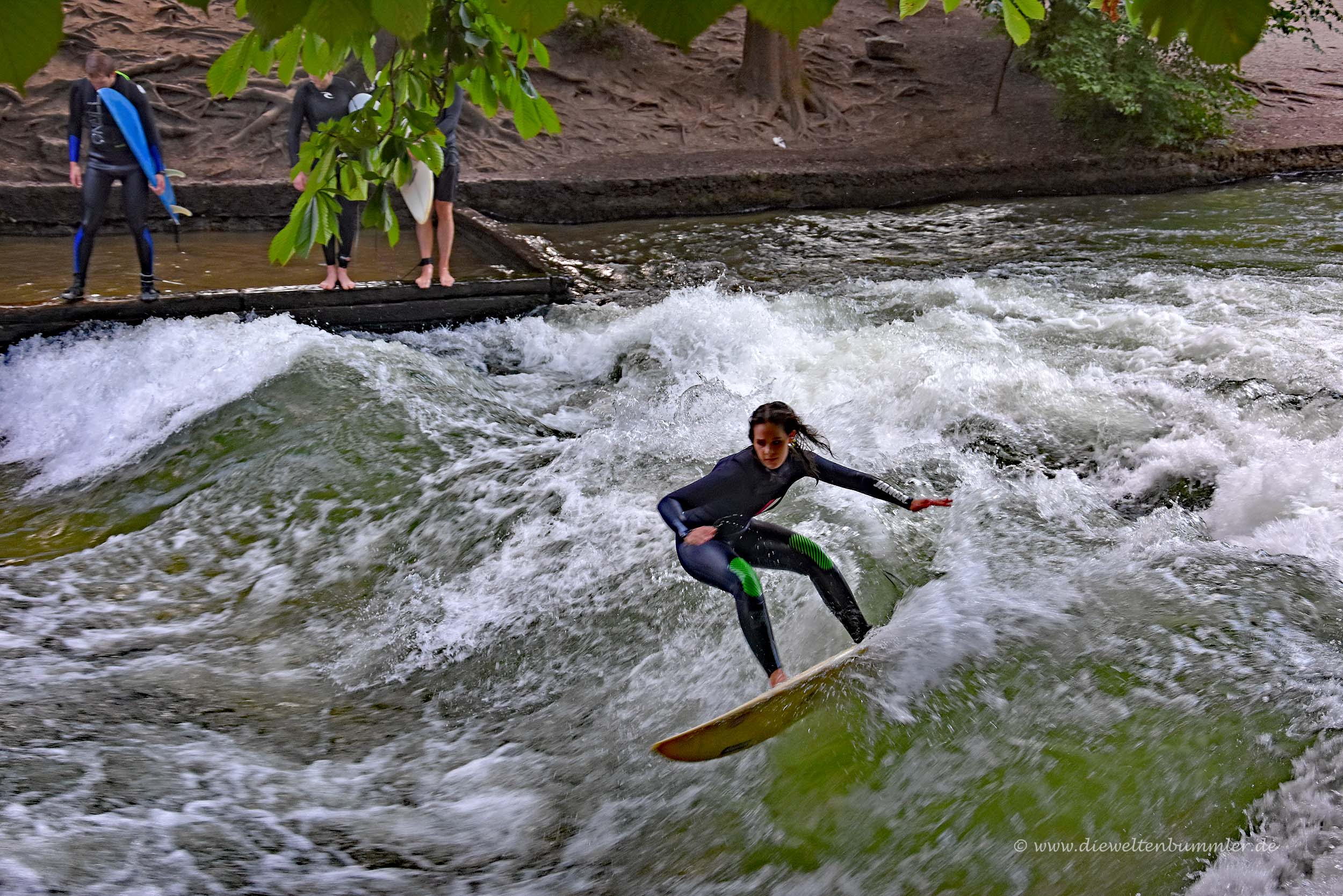 Dort wurde ich dann Zeuge, wie zahlreiche Surfer an einer Welle vom Eisbach ihr Talent zeigten. Alle Achtung, das gefiel mir. Hier merkte ich, an diesem Tag nicht zum ersten Mal, dass es in München eine andere Lebensart gibt als im Ruhrgebiet. Und diese war nicht die Schlechteste.