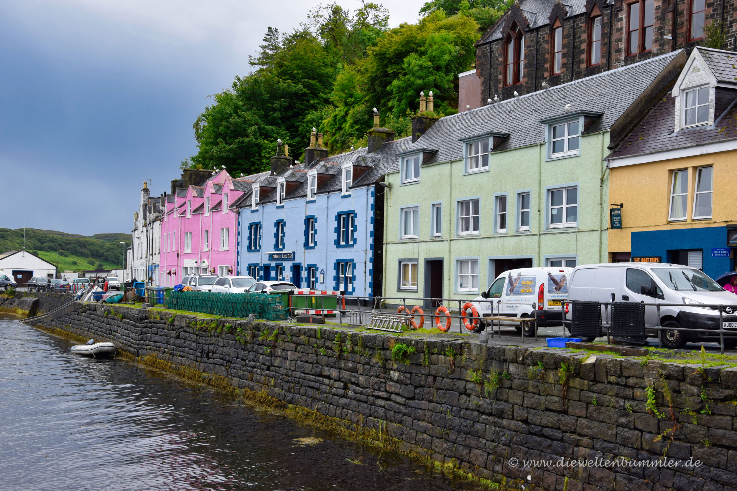 Auf der A87 erreicht man ganz automatisch die Inselhauptstadt Portree. Von Stadt zu sprechen ist bei der Einwohnerzahl von etwas mehr als 2.000 Bewohnern schon ein wenig verwegen.