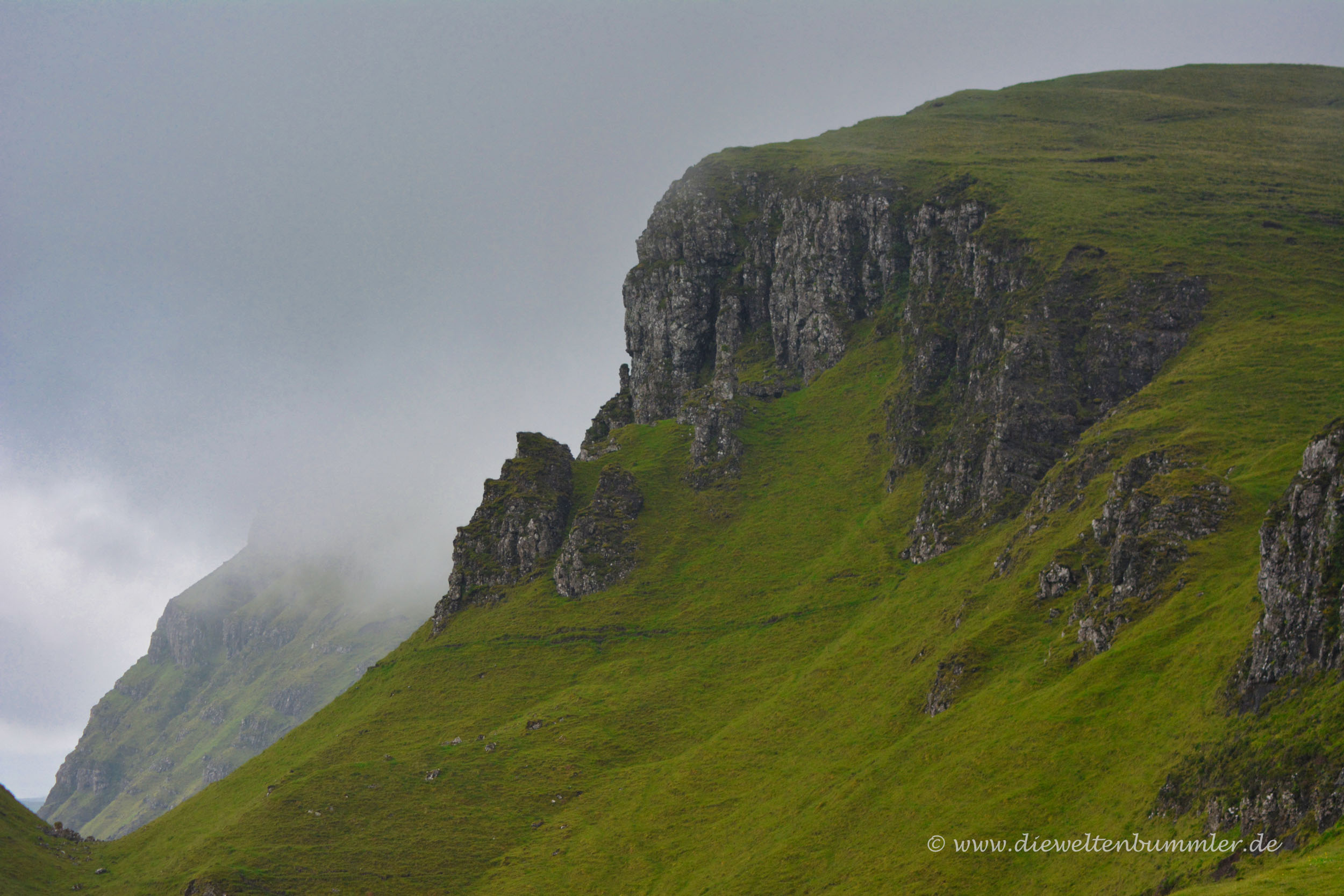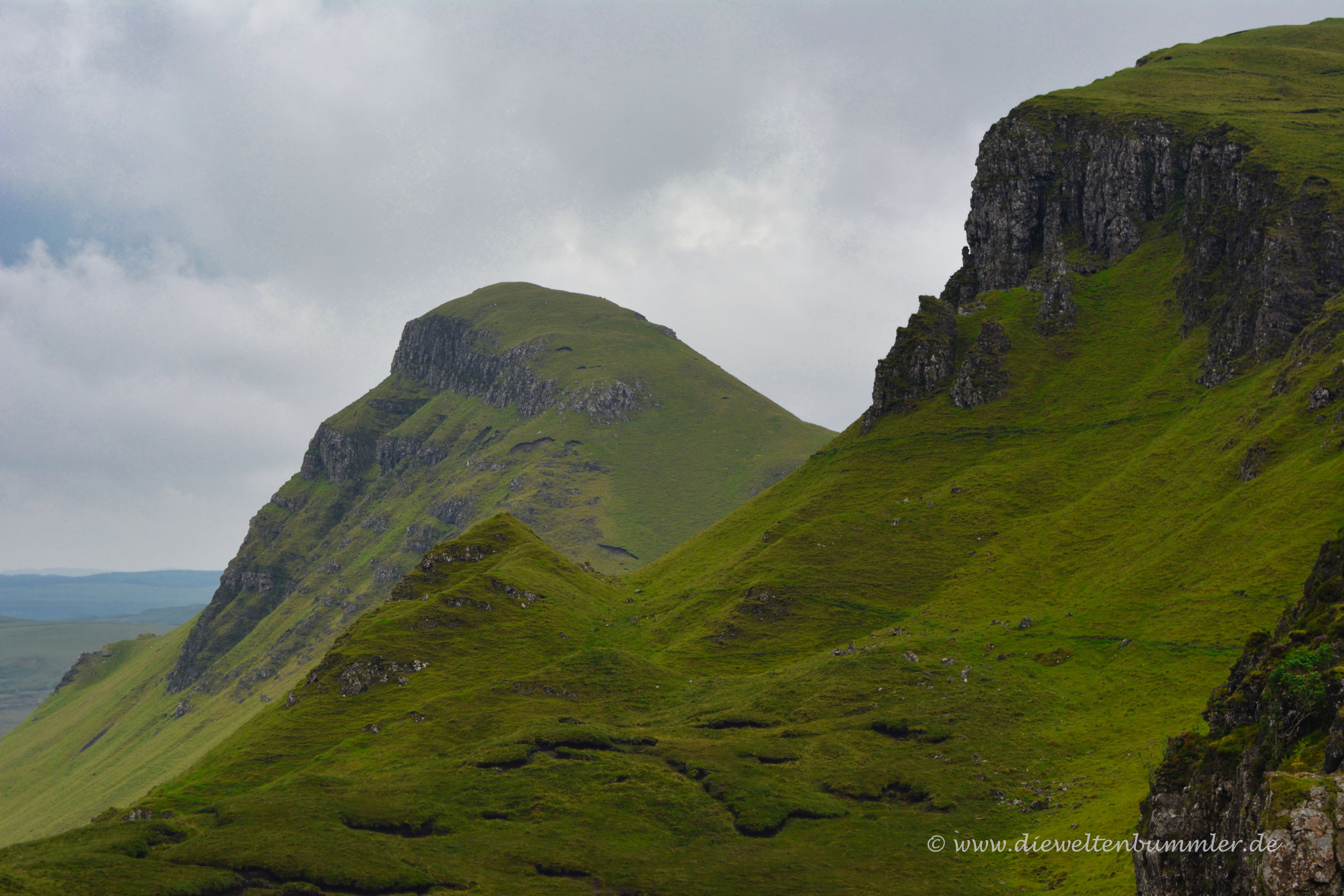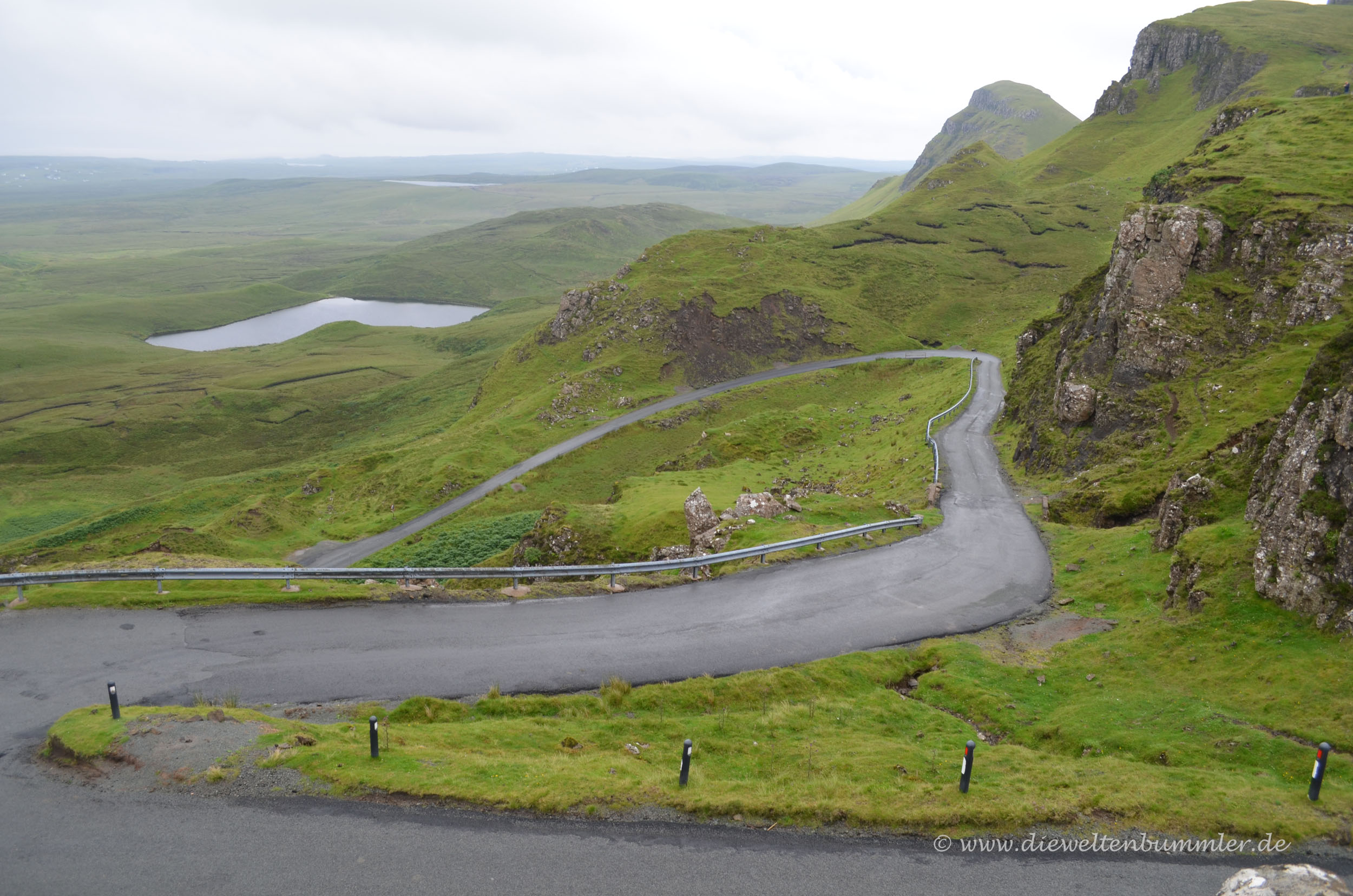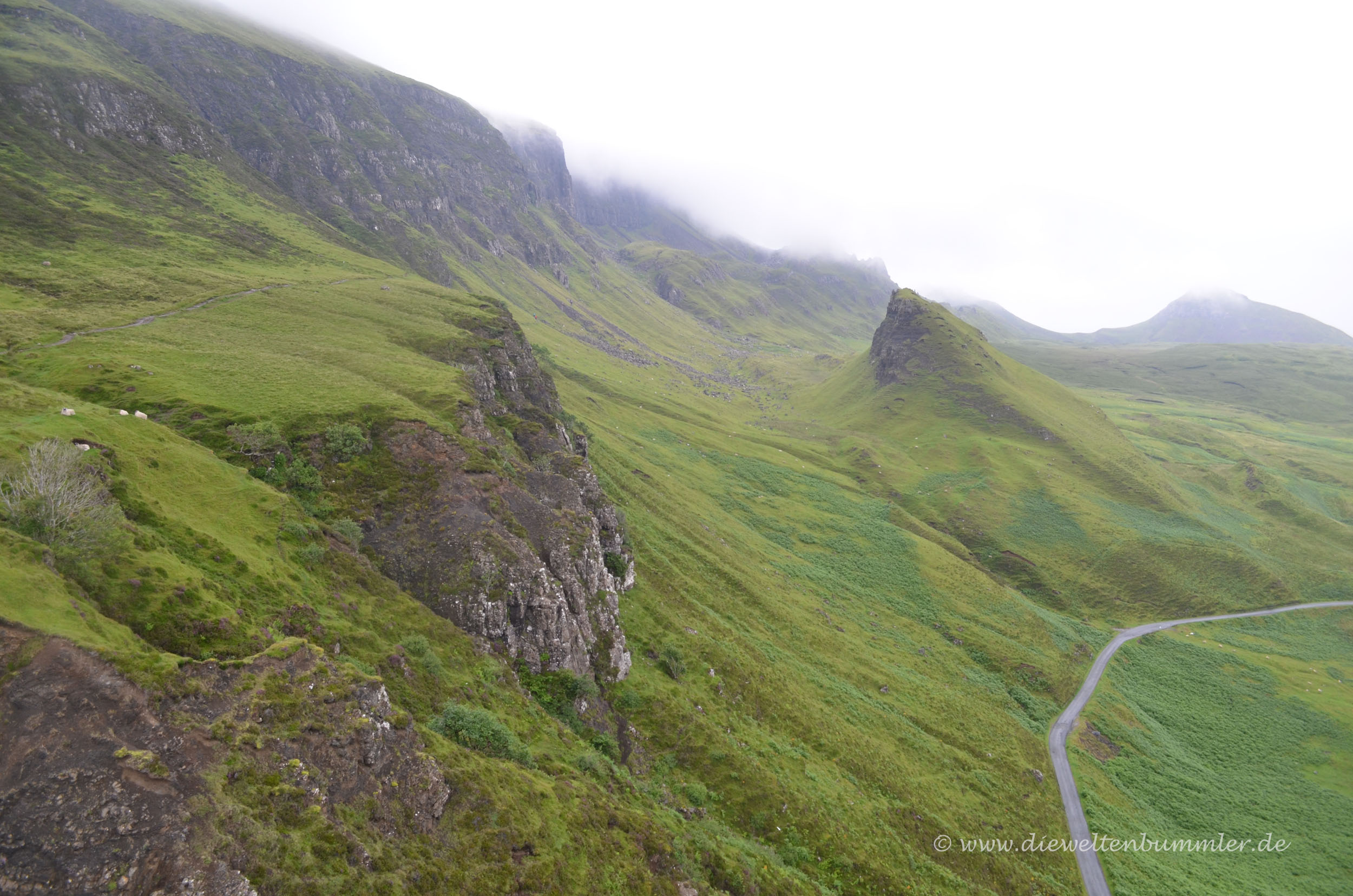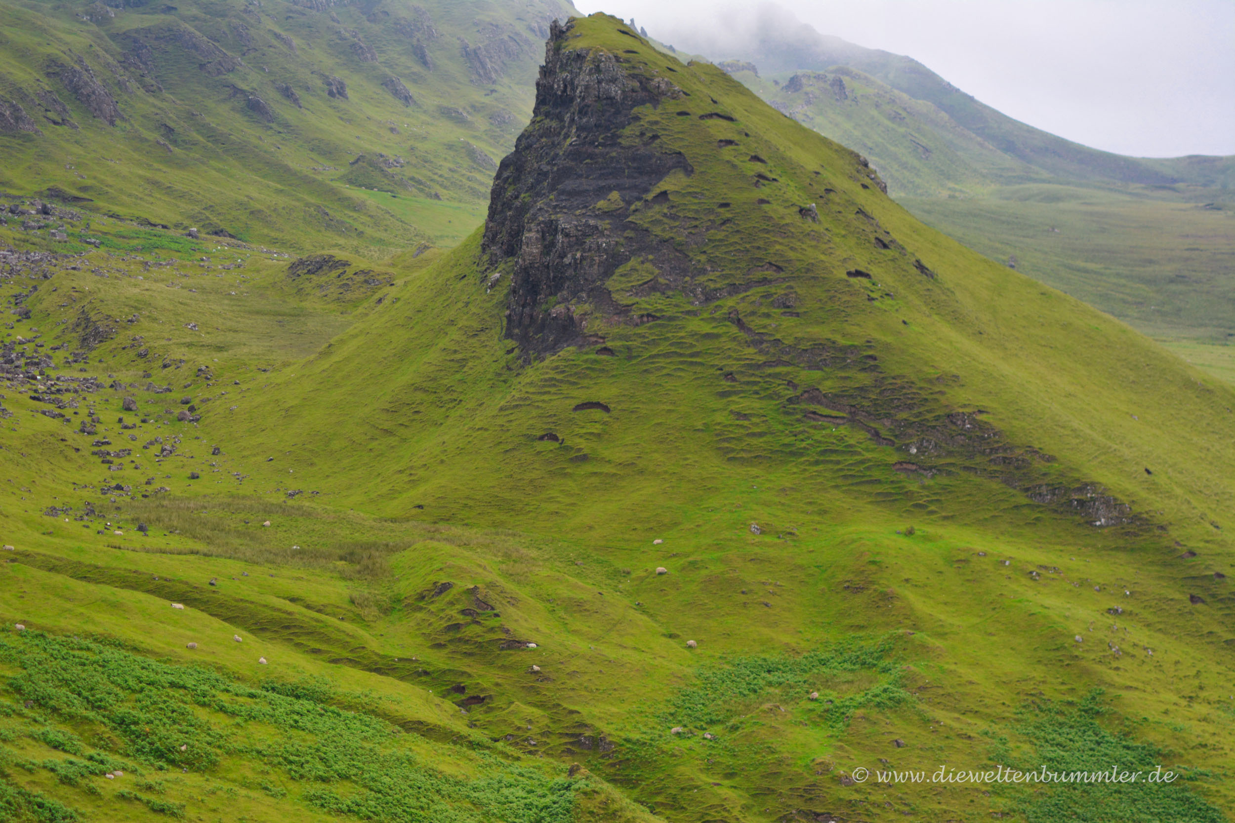 Ganz anders aber bei Quiraing. Einerseits gibt es hier wieder ausgedehnte Wandermöglichkeiten und andererseits ist die Landschaft einfach nur schön. Um sie zu erreichen verlässt man die Ringstraße in das Innere der Halbinsel Trotternish.