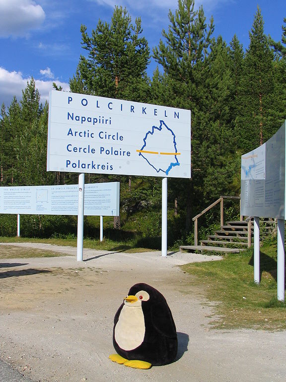 Die Überquerung des Polarkreises ist natürlich auch immer ein besonderes Ereignis, auch wenn man den Polarkreis ja gar nicht sehen kann. Zudem ist der Polarkreis kein fester Punkt, da durch die Schiefe der Ekliptik der Kreis um etwas mehr als 14 Meter pro Jahr wandert. Das hier aufgenommene Foto entstand bei einer Wohnmobil-Reise durch Lappland in der Nähe des schwedischen Jokkmokk.