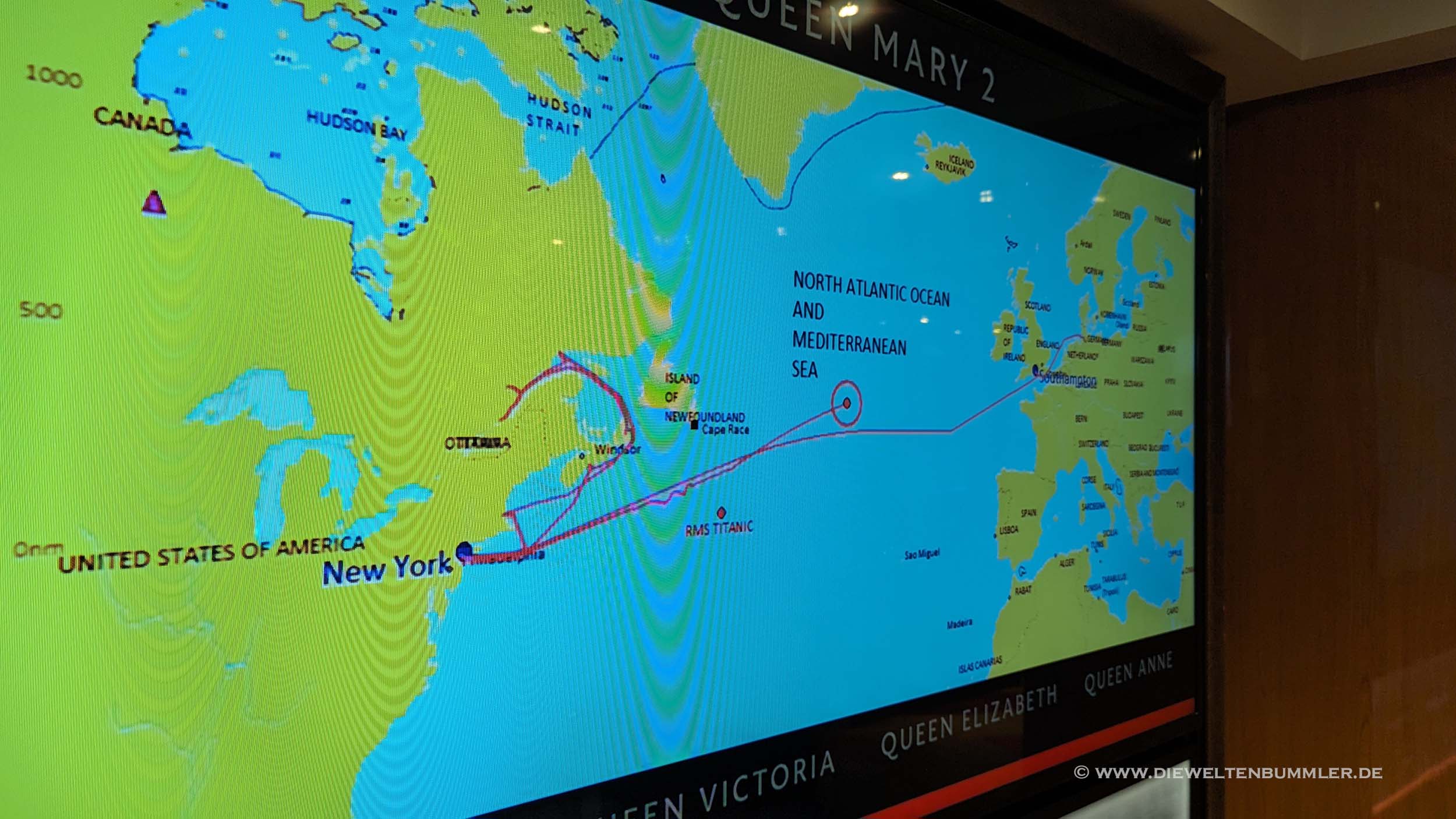 Die Überfahrt verlief aber grundsätzlich wieder einmal total entspannt – zumindest was den Seegang betraf. Nur an einem Tag musste das Schiff dann doch tatsächlich in den Wellen kreuzen. Starker Seitenwind machte sich auch auf der Queen Mary 2 bemerkbar und so hatten wir deutliche Schieflage und das sogar recht spontan. Aber durch das Kreuzen konnte das halbwegs umgangen werden, was allerdings natürlich dazu führte, dass die Strecke noch einmal etwas länger wurde als geplant.