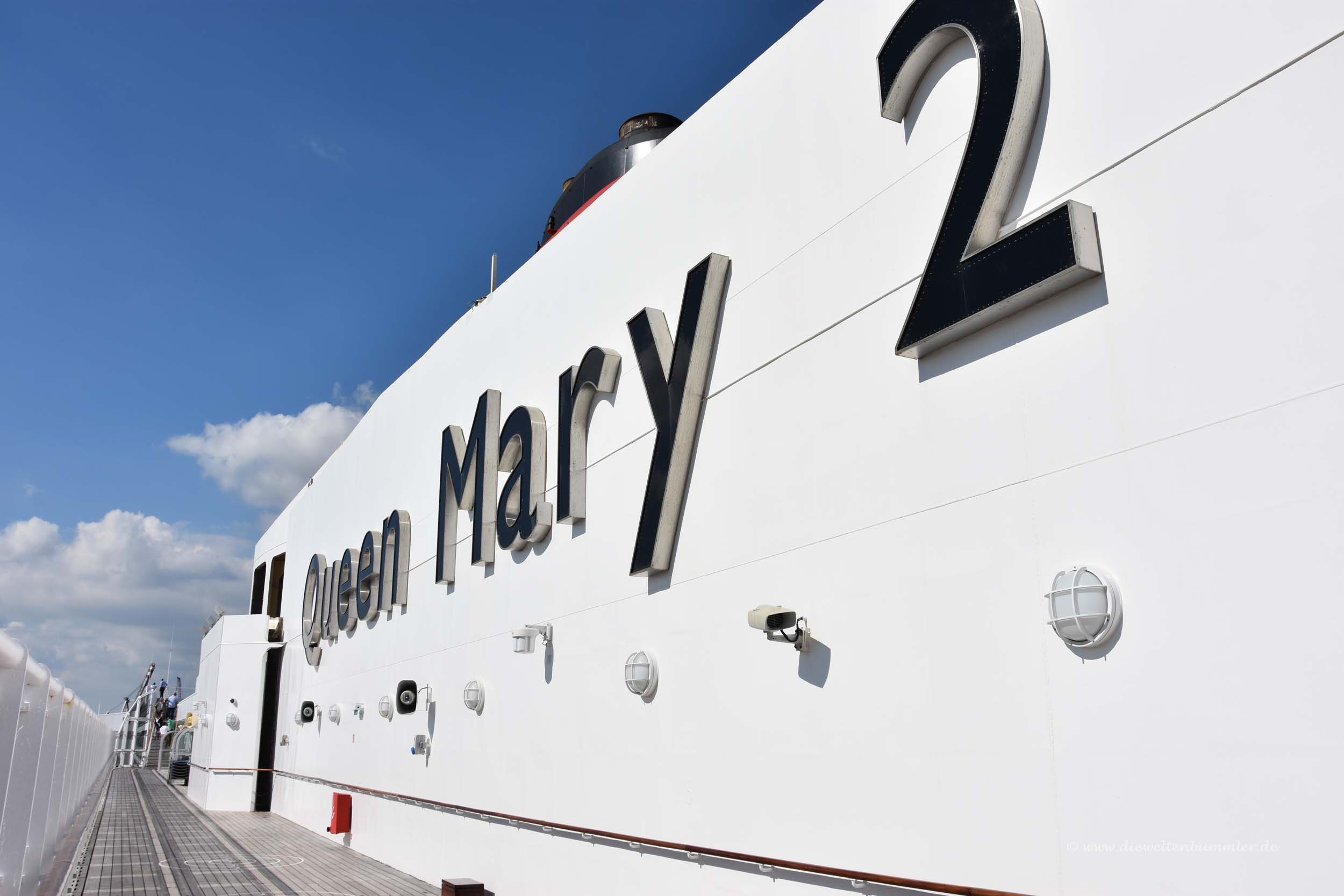 Die Queen Mary 2 (Baujahr 2004) bringt es auf eine Länge von 345 Metern und eine Breite von 41 Metern. Sie besteht aus 13 Decks. Die Queen Elizabeth (Baujahr 2010) hingegen ist 294 Meter lang und 32 Meter breit. Dabei hat sie 12 Decks, wobei ich die oberen Decks aufgrund ihrer Größe gar nicht mehr zählen würde. Sonst könnte ich auch die Aussichtsplattform auf der Queen Mary 2 als 14. Deck bezeichnen. Dabei geht man hier nur eine Treppe hoch und läuft man quasi auf den Kabinen von Deck 13 umher.