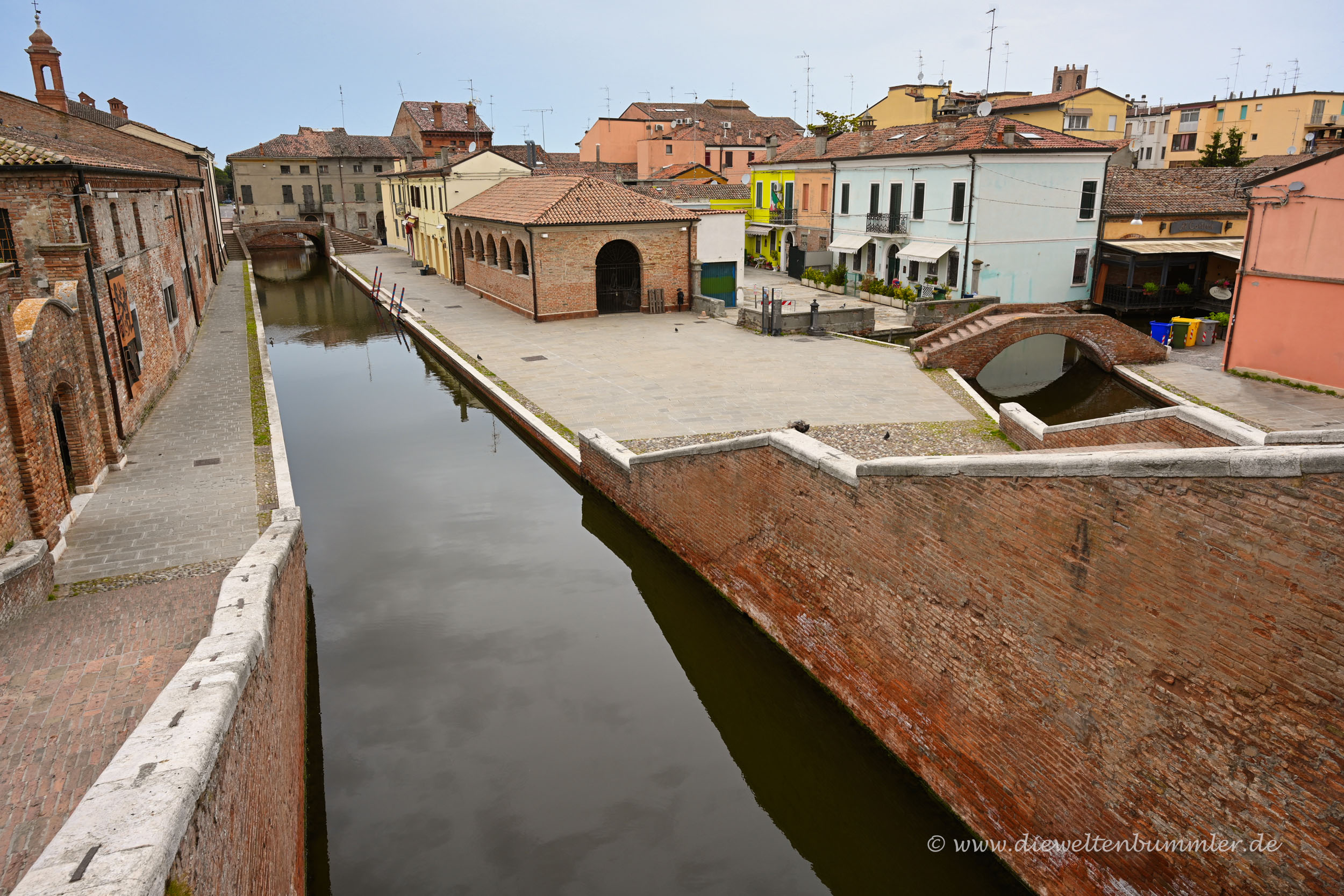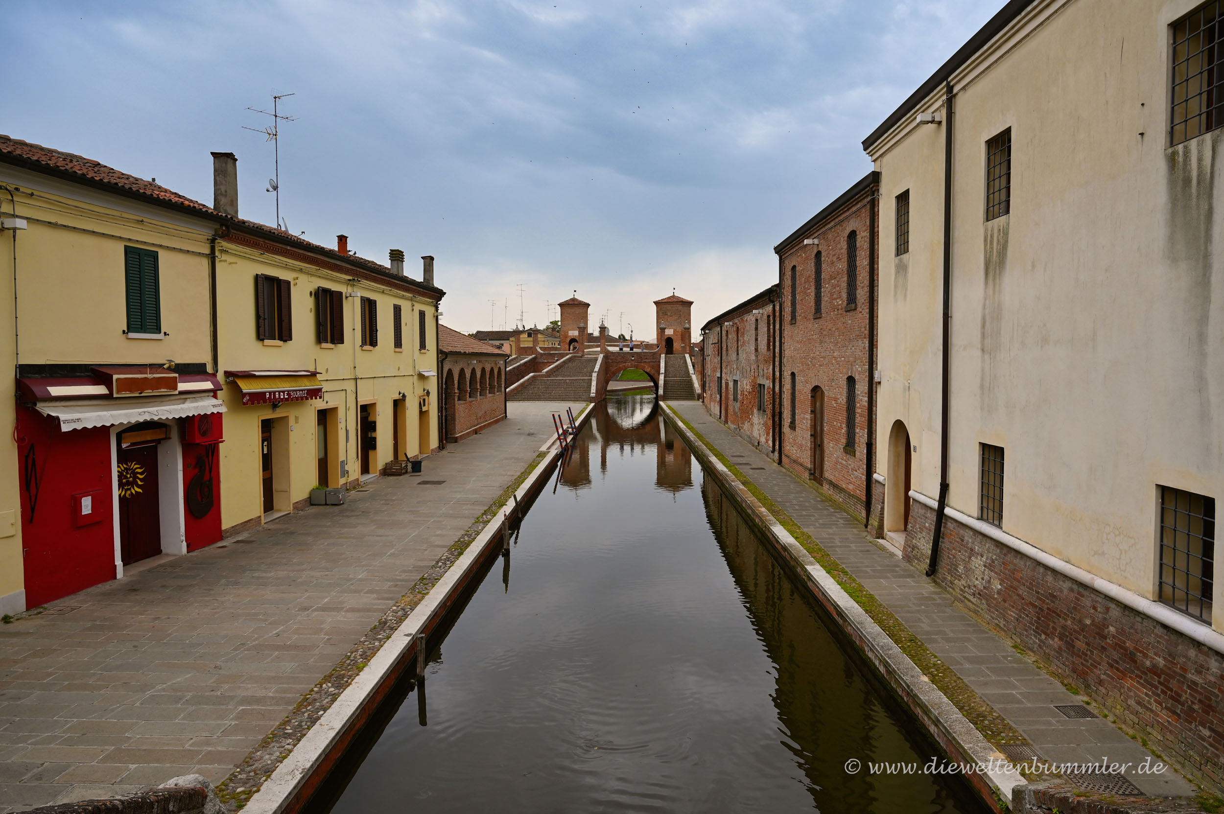 Comacchio ist eine kleine Stadt. Aber sie ist eine zentrale Stadt im Po-Delta in Italien. Sie liegt nicht direkt an der Adria, sondern ein paar Kilometer weiter im Landesinneren.