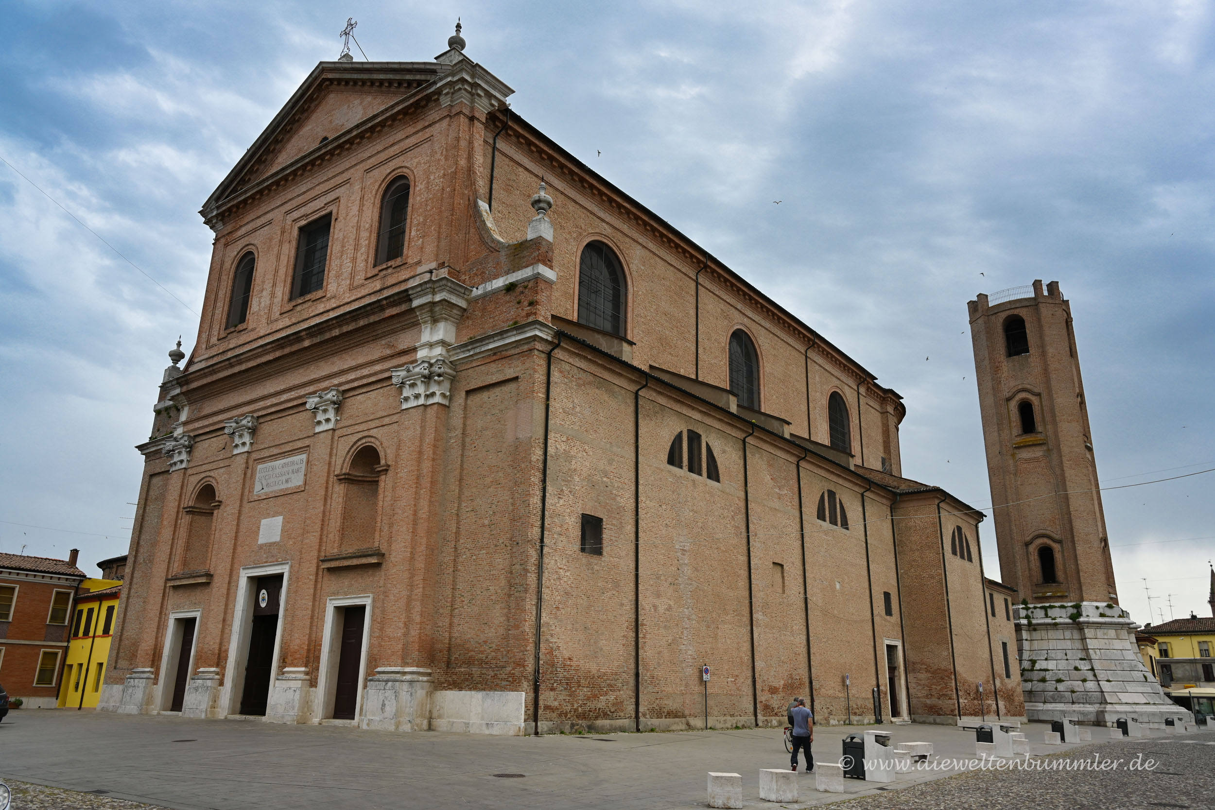 Folgt man der Straße, so gelangt man nach kurzer Zeit zur Kathedrale San Cassiano. Sie beeindruckt vor allen Dingen mit ihrem Turm. Den gab es auch mal in größer, aber er stürzte ein und wurde zum heutigen Bauwerk neu errichtet. Dabei wurde der Turm jedoch nie fertiggestellt. Massiv ist er vor allem am Fuße des Turms.