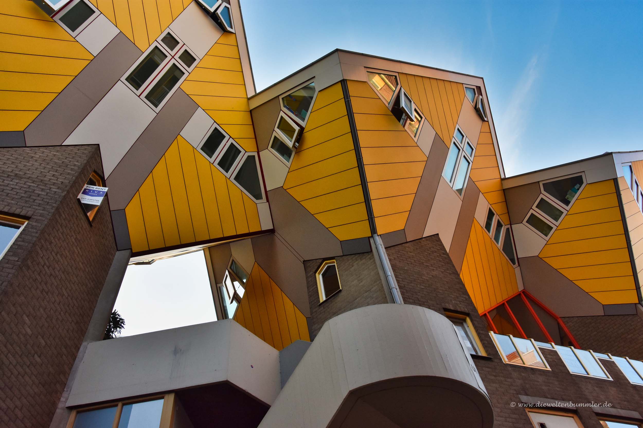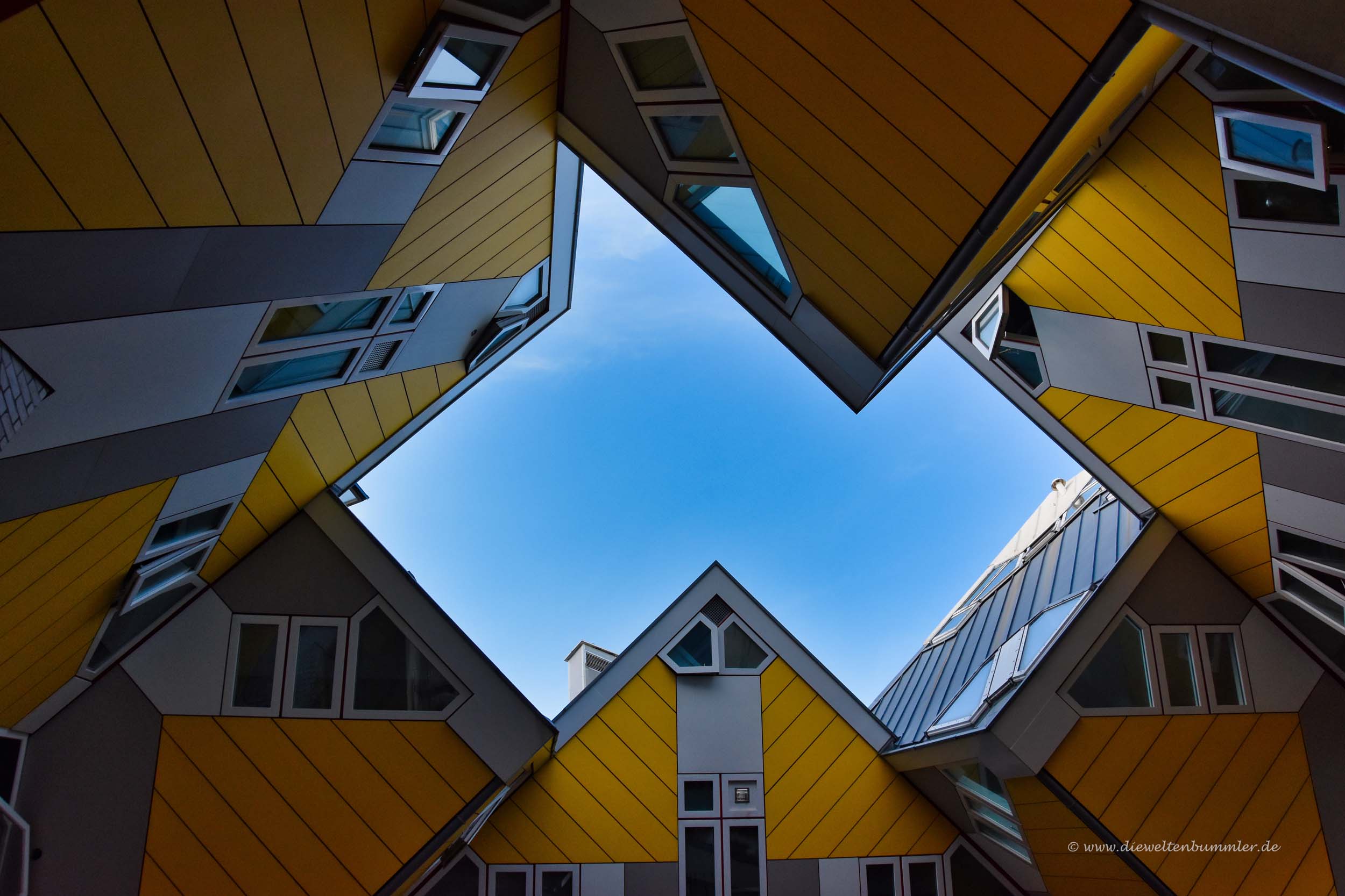 Bei den Kubushäusern handelt es sich um mehr als 50 Kuben, die auf ihre Art ein kleines Wohnviertel ergeben. Jeder Kubus ist knallgelb und grenzt direkt an einen weiteren Kubus. Das heißt, keines der Kubushäuser steht für sich alleine.