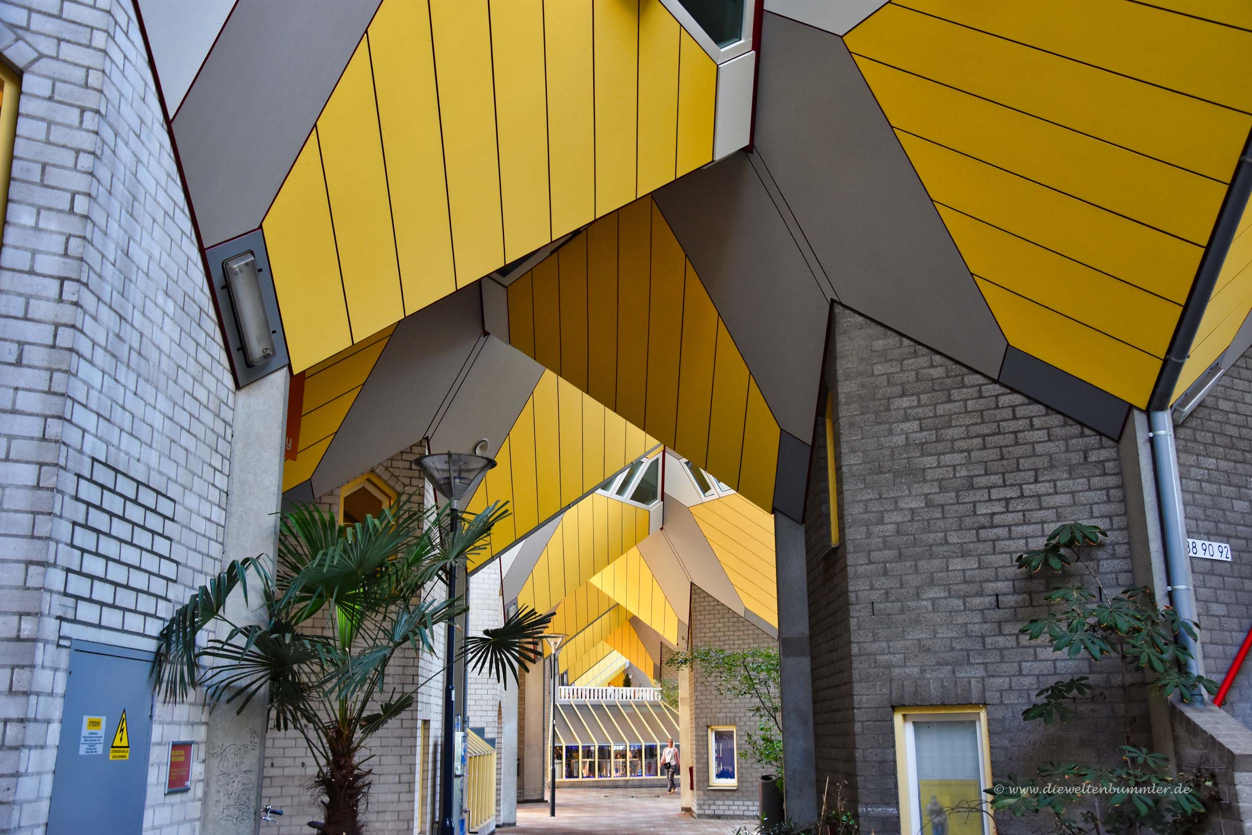 Fußweg zwischen den Kubushäusern in Rotterdam