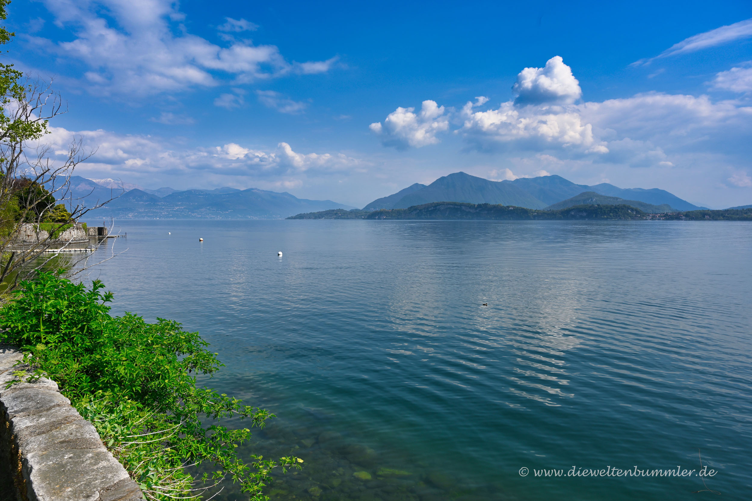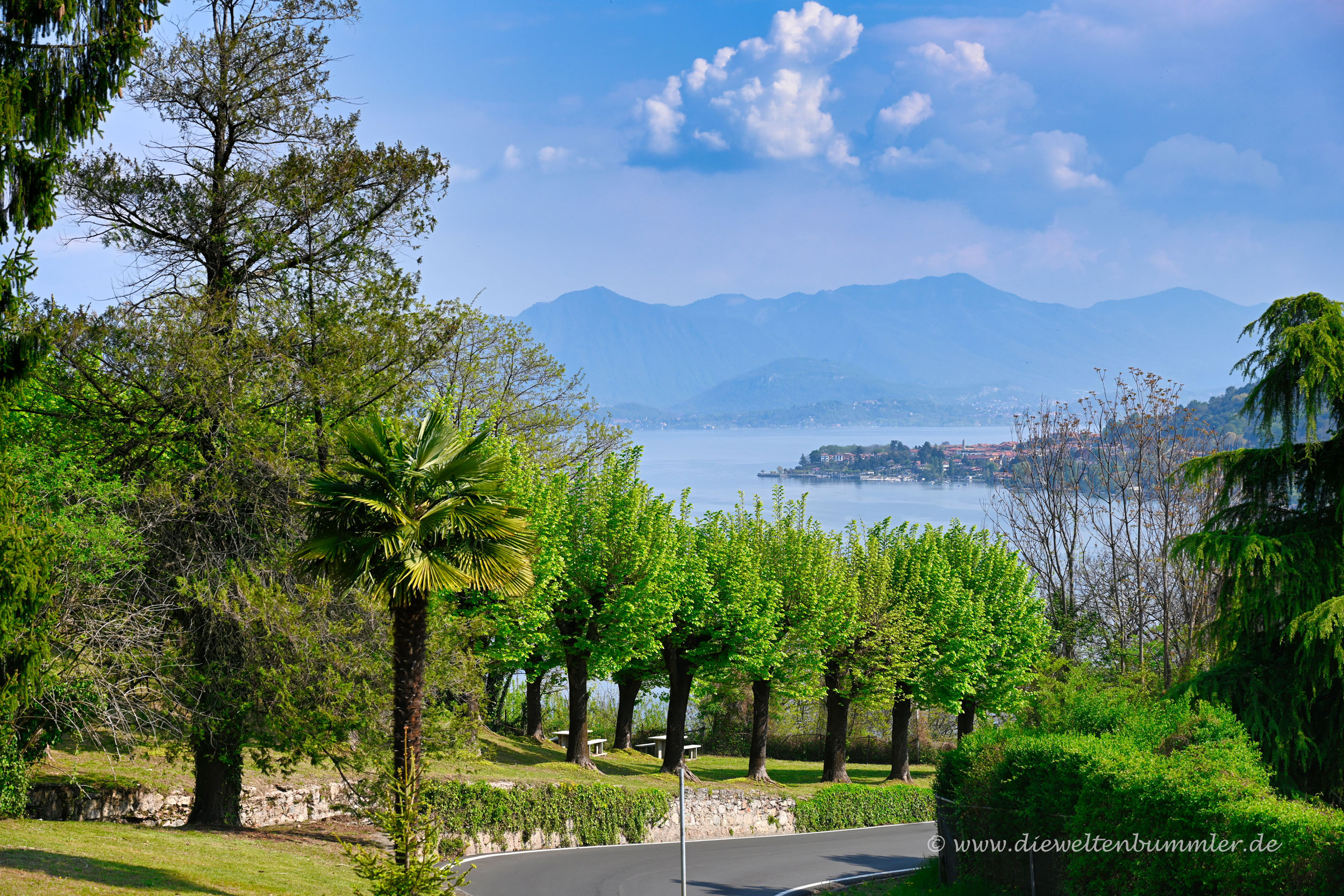 Von Arona aus kann man der Uferstraße, der SS33, rund 18 Kilometer nach Norden folgen und dabei immer wieder den Seeblick genießen. Besonders schön ist dabei, dass man auf die Kulisse der Alpen blickt, die sich nördlich des Sees erheben. Parkmöglichkeiten sind ein wenig spärlich, ist halt ein beliebtes Pflaster, aber hin und wieder gibt es auch die Möglichkeit, einfach mal neben der Fahrbahn zu stoppen.