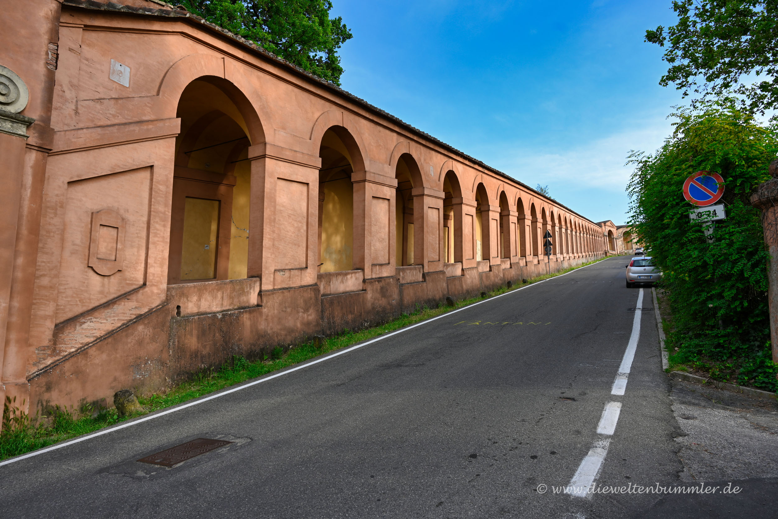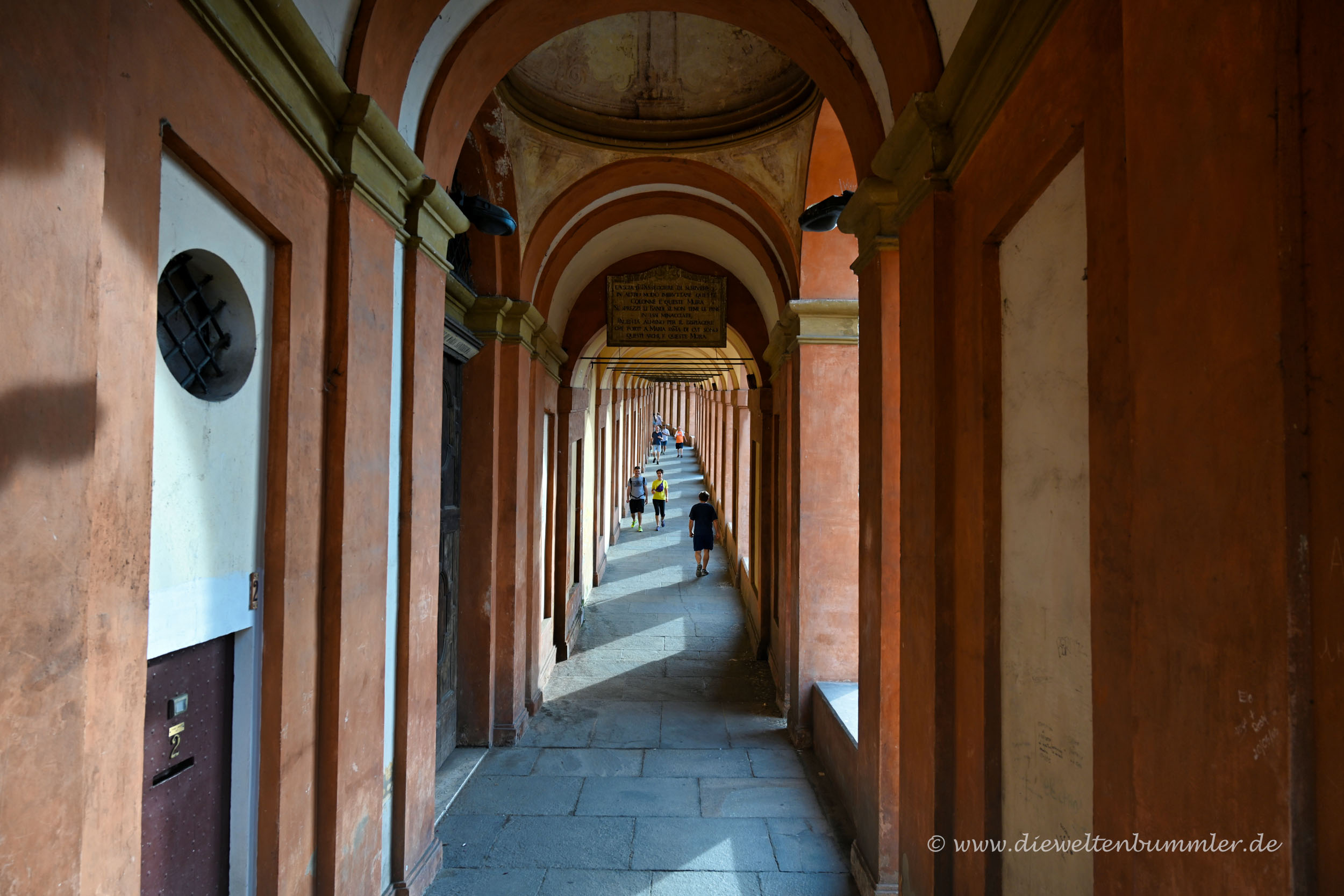 Denn dort befindet sich der Arco Del Meloncello als Ausgangspunkt für einen weiteren vier Kilometer langen Arkadengang. Dieser gilt als der längste Arkadengang der Welt und führt bergauf zum Hügel San Luca, auf dem sich eine Wallfahrtskirche befindet. Insgesamt soll Bologna weit über 30 Kilometer Arkadengang besitzen. Das habe ich allerdings nicht nachgemessen oder erwandert.