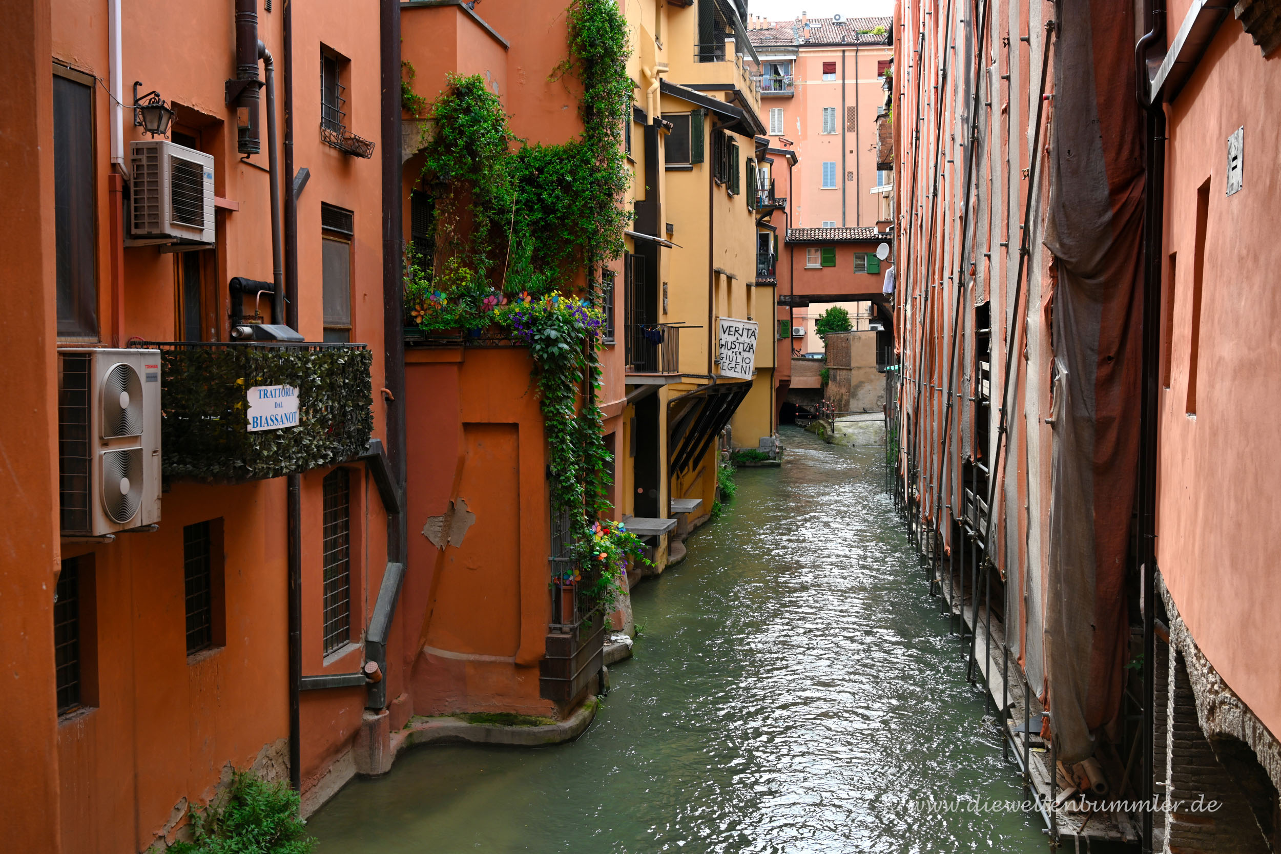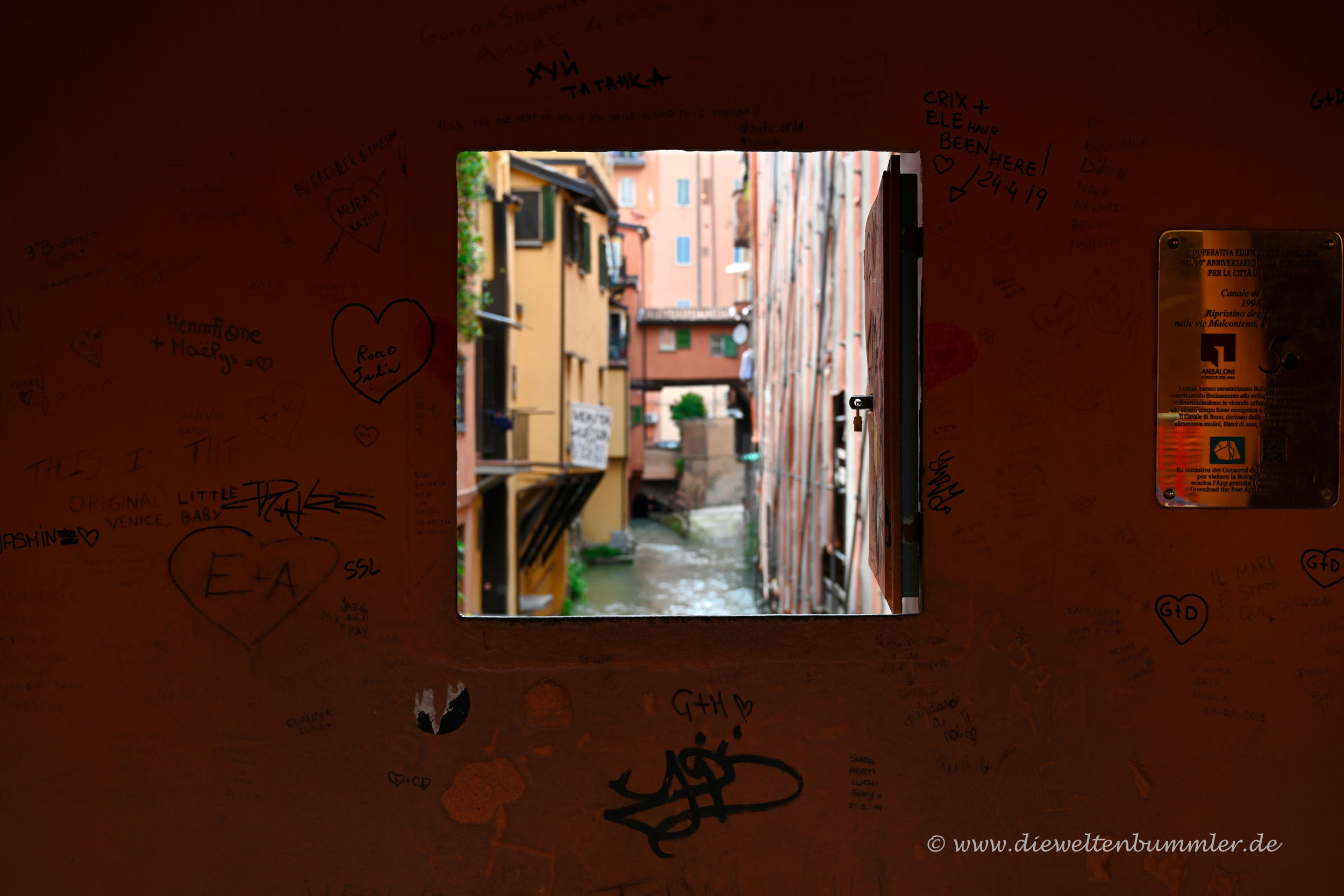 Da wäre zum Beispiel das Finestrella, das Fensterchen. Es befindet sich in der Via Piella, gerade einmal 500 Meter Fußweg von der Endhaltestelle entfernt. In der schmalen Gasse wird man das Fenster gut an der kleinen Menschentraube erkennen, in der ein jeder geduldig darauf wartet, einmal durch das Fenster blicken zu können.
