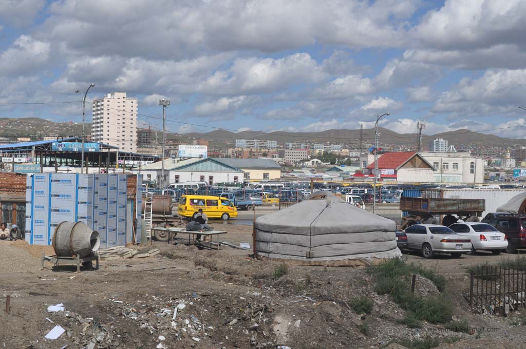 Vor manchen dieser Jurten standen Pferde, oft auch moderne, westliche Autos. Nicht selten waren zudem übergroße Satellitenschüsseln zu sehen, die halbversteckt unter Wäscheleinen hervorlugten.
