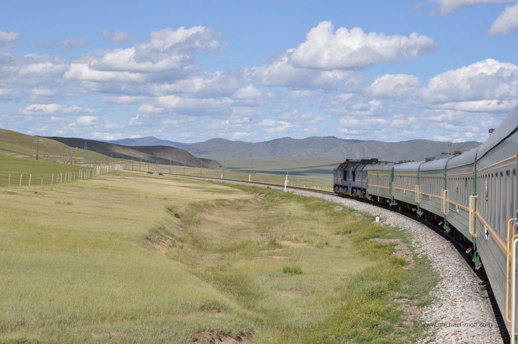 In der Nacht sahen wir natürlich nichts. Dadurch verpassten wir nahezu die komplette Wüste Gobi, was zwar schade ist, doch dafür sahen wir am nächsten Tag viele andere Dinge. Und ich muss sagen, die rund eintägige Fahrt durch die Mongolei bot eine der schönsten Ausblicke auf die Landschaft währen der Transsibreise. Allerdings muss erwähnt werden, dass an diesem Tag strahlend blauer Himmel herrschte und die Schaffner die Waggonfenster öffneten, so dass man herrlich nach draußen fotografieren oder einfach nur die Landschaft genießen konnte. Um es kurz zu machen: An diesem Tag durch die Mongolei hat mich nichts vom Fenster wegbekommen.