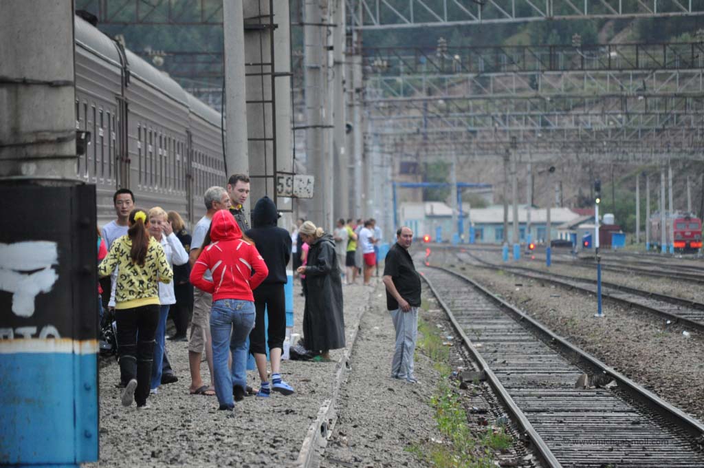 In Sabaikalsk stiegen wir also aus und wollten ein wenig die Stadt besichtigen als plötzlich ein junges Pärchen aus einem anderen Waggon an uns vorbei kam und deutlich sichtbar aus dem Westen stammte. Wir grüßten uns und es stellte sich heraus, dass sie auch aus Deutschland stammten. Viel schlimmer aber: Sie seien auch schon aus Moskau dabei. An dieser Stelle erinnere ich nochmal, dass wir auf dem Moskauer Bahnsteig keine westlichen Touristen sahen und die Anzahl der dort Wartenden recht überschaubar war. Unsere Vermutung, sie können damals nur im letzten Augenblick zum Zug gekommen sein, unterstrichen sie mit der Tatsache, dass sie auch in Sabaikalsk beinahe den Zug verpassten. Einen Zug mit sechs Stunden Aufenthalt knapp zu verpassen, obwohl es nur wenige Straßen rund um den Bahnhof gibt und vom Bahnsteig aus die Steppe zu sehen ist, ist schon eine Kunst.