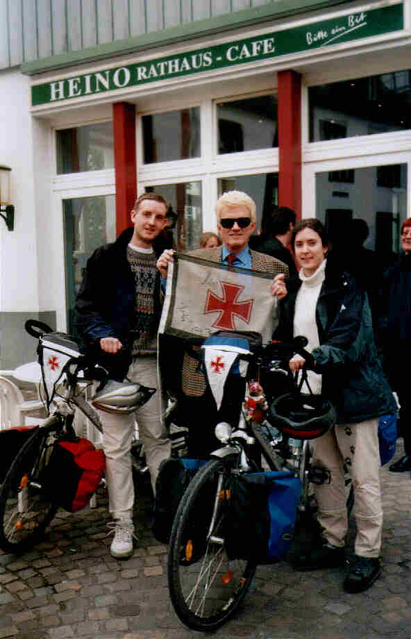 Im Herbst 2001 dachte ich darüber nach, wie man auf einer Radtour auch etwas Gutes tun kann. Einfach nur so durch Europa zu radeln wäre mir wohl zu langweilig geworden. Nach Abwägung der Möglichkeiten kam ich auf die Idee, für die Deutsche Gesellschaft zur Rettung Schiffbrüchiger (DGzRS) Autogramme bzw. Unterschriften von prominenten Persönlichkeiten aus dem Sport und der Unterhaltung in Deutschland zu sammeln. Nicht einfach nur auf Papier, sondern auf einem Gegenstand, der direkt mit der DGzRS in Verbindung steht. Nach einem kurzen schriftlichen und telefonischen Kontakt fand ein Treffen mit Herrn Neumann und dem Geschäftsführer der DGzRS; Herrn Dr. Anders im Januar 2002 statt, in dem das Vorhaben persönlich geklärt wurde. Er schlug vor, dass meine damalige Partnerin und ich eine Flagge mit dem sogenannten Hansekreuz mitnehmen und Deutschlands Prominenz darauf unterschreiben lassen. Des Weiteren lud er uns ein, vor der Tour nach Bremen zu kommen um uns die dortige Seenotrettungsleitstelle anzuschauen, damit wir einen Einblick dessen bekommen, was die Organisation leistet. Aus der anfänglich einen Flagge sind auf Grund der großen Resonanz und Bereitschaft der Prominenten drei geworden. Die Flaggen hingen über viele Jahre hinweg an Seenotrettungskreuzern und sind dementsprechend dem Wind und Wetter ausgesetzt gewesen. Die drei Flaggen waren unterschiedlich groß.