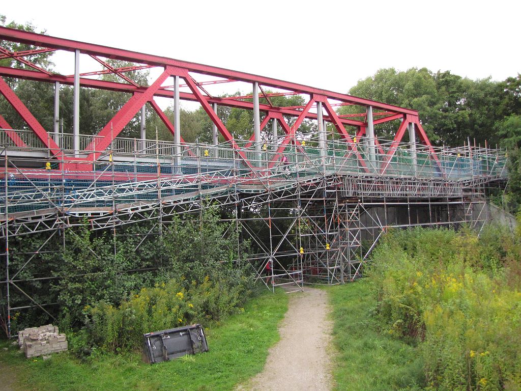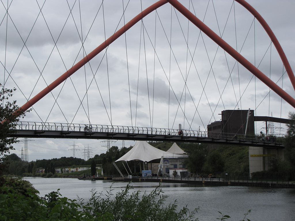 Dabei werden zahlreiche, neu angelegte Brücken überquert, die teilweise recht spektakulär wirken. Einen diesigen Sonntag nutzten wir, um diese Trasse in eine kleine Ruhrgebietstour mit einzubinden. Wir radelten von unserem Zuhause bis Bochum, dort auf der Erzbahntrasse bis zum Kanal auf Gelsenkirchener Stadtgebiet. Am Kanal ging es weiter bis zum Nordsternpark, wo wir wieder gen Süden abbogen. Am Weltkulturerbe Zeche Zollverein entlang ging es dann wieder zurück nach Hause, wo wir nach insgesamt 45 km eintrafen.