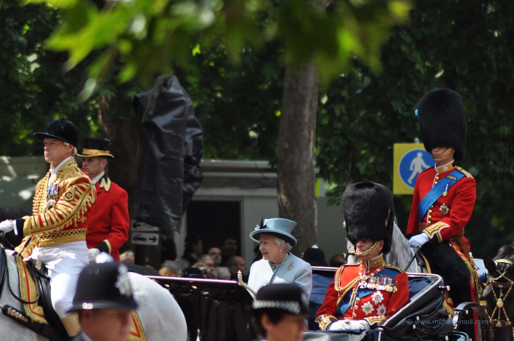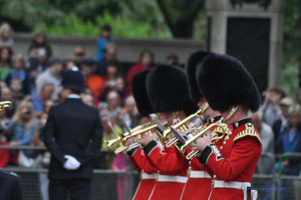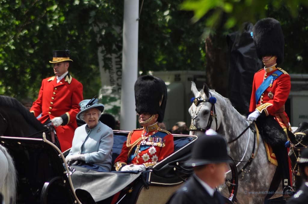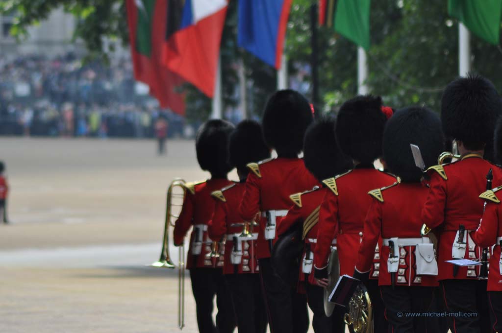 Im Londoner Zentrum gibt es natürlich allerhand zu besichtigen: den Picadillycircus, den Trafalgar Square, der als geografischer Mittelpunkt von London gilt, die Westminster Abbey und den Buckingham Palast. Zufälligerweise gab es an diesem Wochenende das traditionelle Trooping the Colour, eine Militärparade, bei der man nicht nur die Queen, sondern die gesamte Königsfamilie sehen kann.