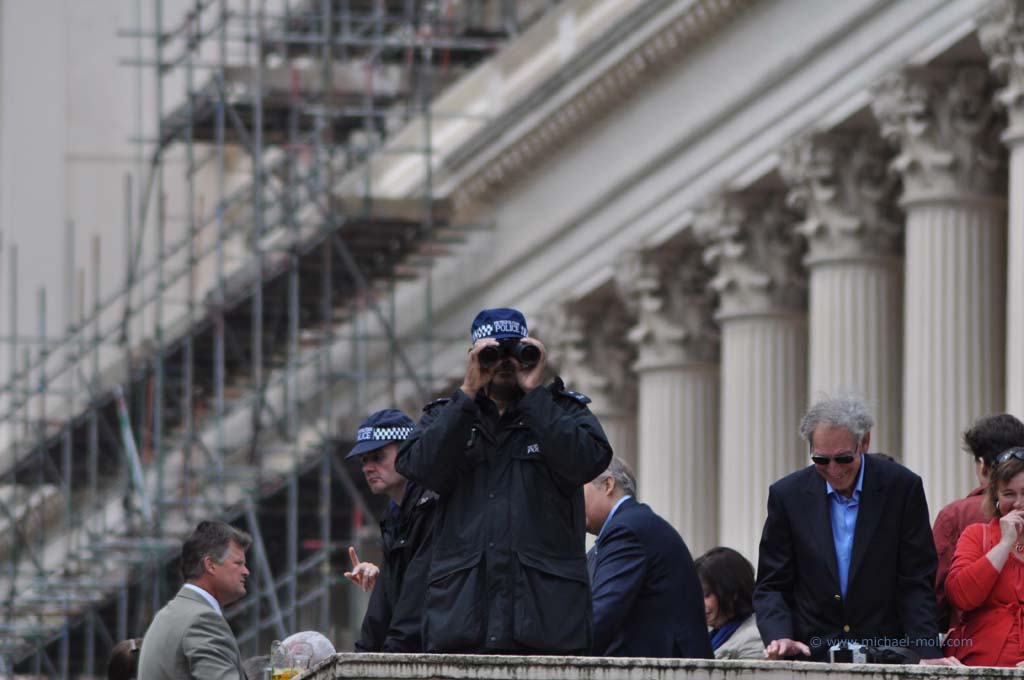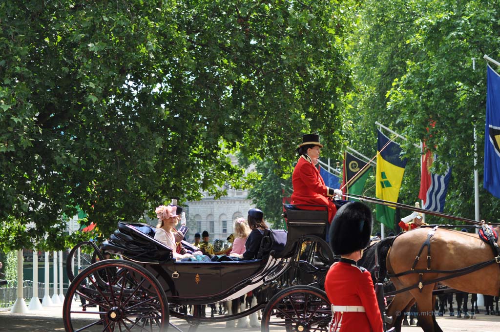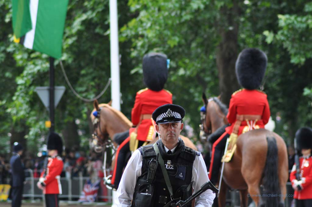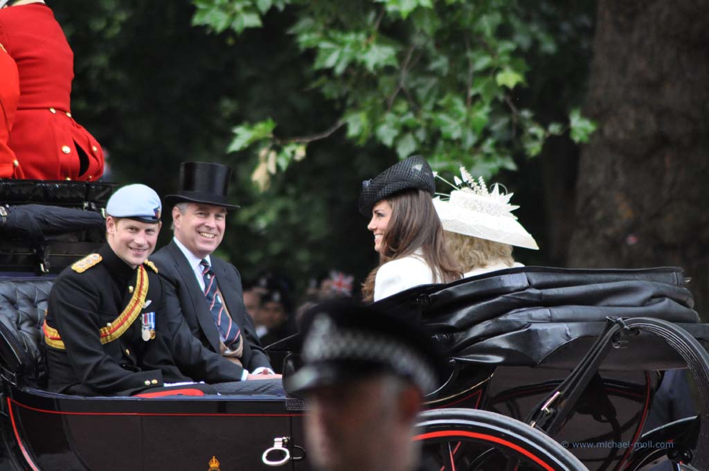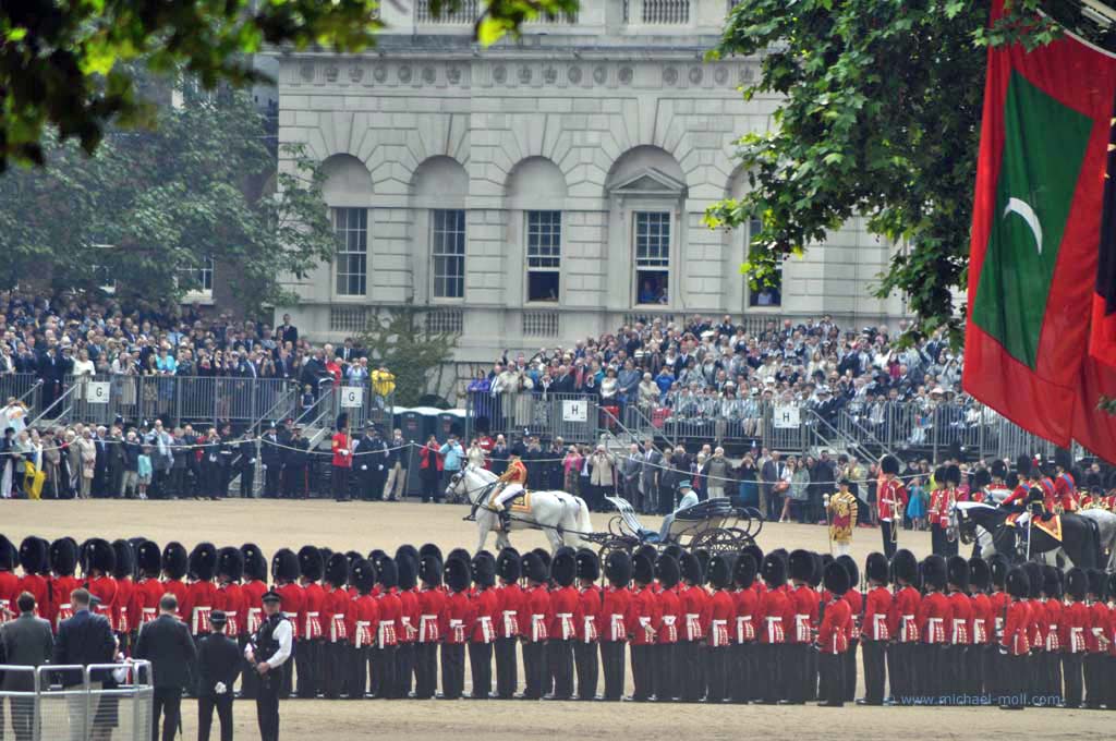 Im Londoner Zentrum gibt es natürlich allerhand zu besichtigen: den Picadillycircus, den Trafalgar Square, der als geografischer Mittelpunkt von London gilt, die Westminster Abbey und den Buckingham Palast. Zufälligerweise gab es an diesem Wochenende das traditionelle Trooping the Colour, eine Militärparade, bei der man nicht nur die Queen, sondern die gesamte Königsfamilie sehen kann.