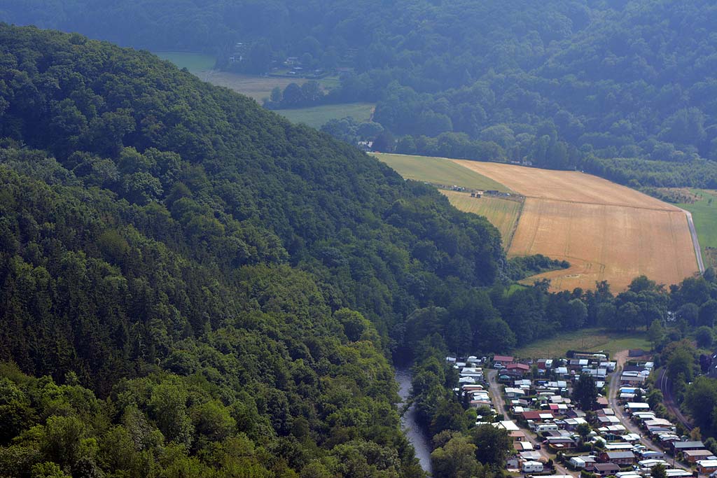 Im weiteren Verlauf fließt die Rur durch die Eifel, wird zum Rursee gestaut, wo man stundenlang wandern kann. Gleich daneben befindet sich die Urfttalsperre über die sich „Vogelsang ip“ erhebt. Diese ehemalige Ordensburg kannte ich schon von einer früheren VW-Bus-Tour in die Eifel. Vogelsang ip ist Teil der Dreiborner Hochfläche, auf der sich wiederum das einstige Dorf Wollseifen befindet. Heute so eine Art Geisterdorf.