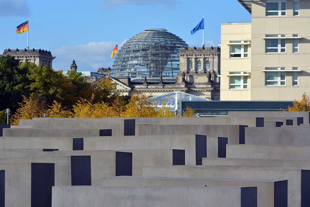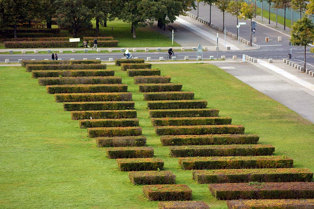 Unser nächster Weg führte uns zum Holocaust-Mahnmal. Auch hier bin ich in der Vergangenheit schon das ein oder andere Mal daran vorbeigegangen. Aber irgendwie habe ich es verpasst, dass es unter dem eigentlichen Mahnmal mit den berühmten Felsblöcken noch eine Ausstellung gibt. Keine Frage, dass wir uns die angeschaut haben. Gar nicht weit entfernt befindet sich heute ein kleiner Parkplatz. Und wo wir doch gerade dabei waren, die Geschichte des letzten Jahrhunderts vor Ort nachzulesen, passte auch dieser Parkplatz ins Bild. Denn dort befand sich der ehemalige Führerbunker, wo sich Hitler der Verantwortung entzog und im Garten verbrannt wurde.