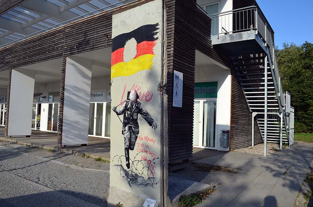 Damit endete unser erster Tag in Berlin und wir fuhren, dank Welcome-Card, kostenlos mit der S-Bahn zurück nach Tegel. Am nächsten Tag war Feiertag – der Tag der deutschen Einheit. Und wir mitten drin, in Berlin. Aber von den Feierlichkeiten merkten wir erstmal gar nichts. Denn unser erster Weg führte zum Potsdamer Platz. Von dort folgten wir dem Verlauf der ehemaligen Berliner Mauer bis zur Topographie des Terrors.