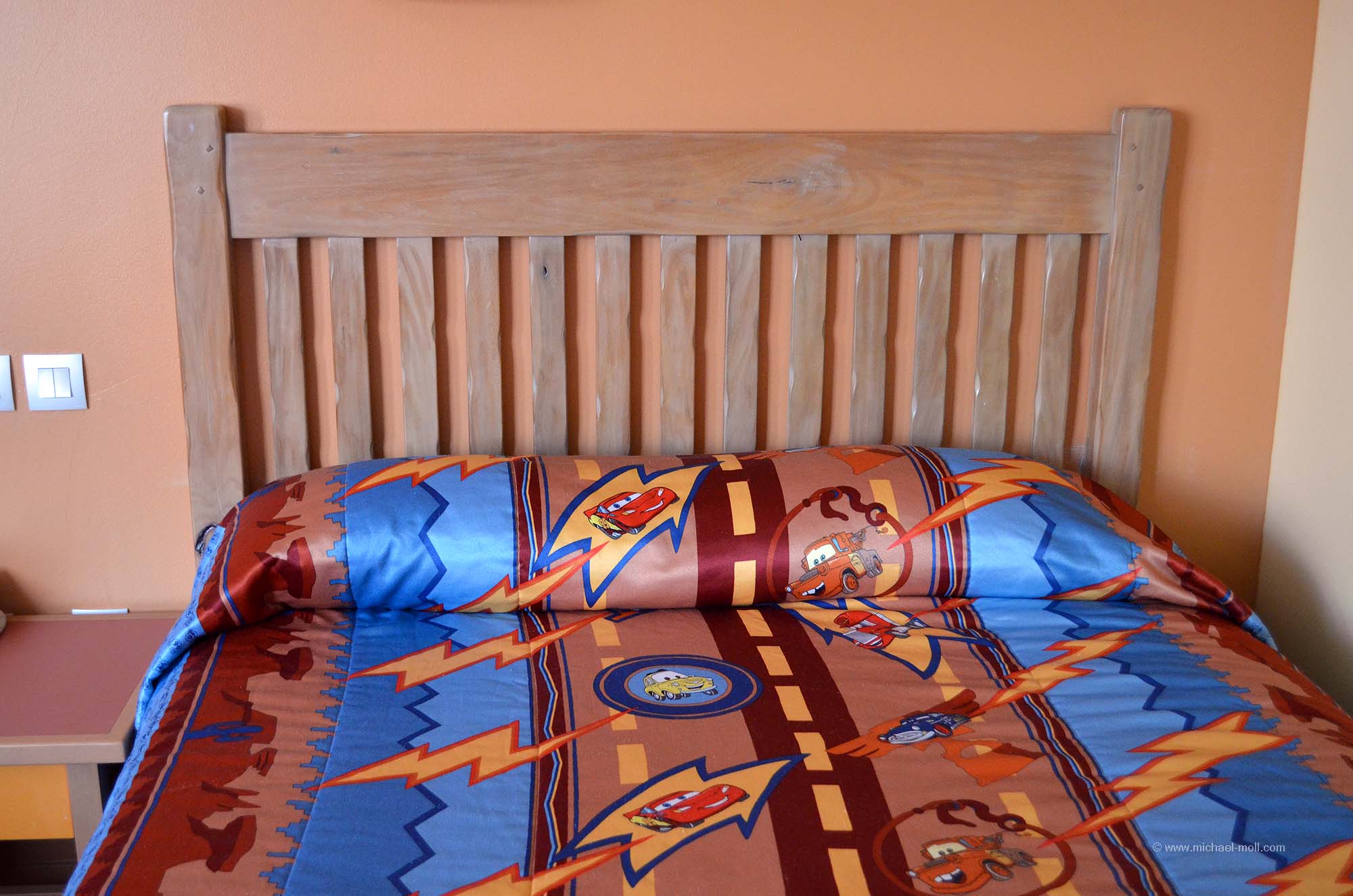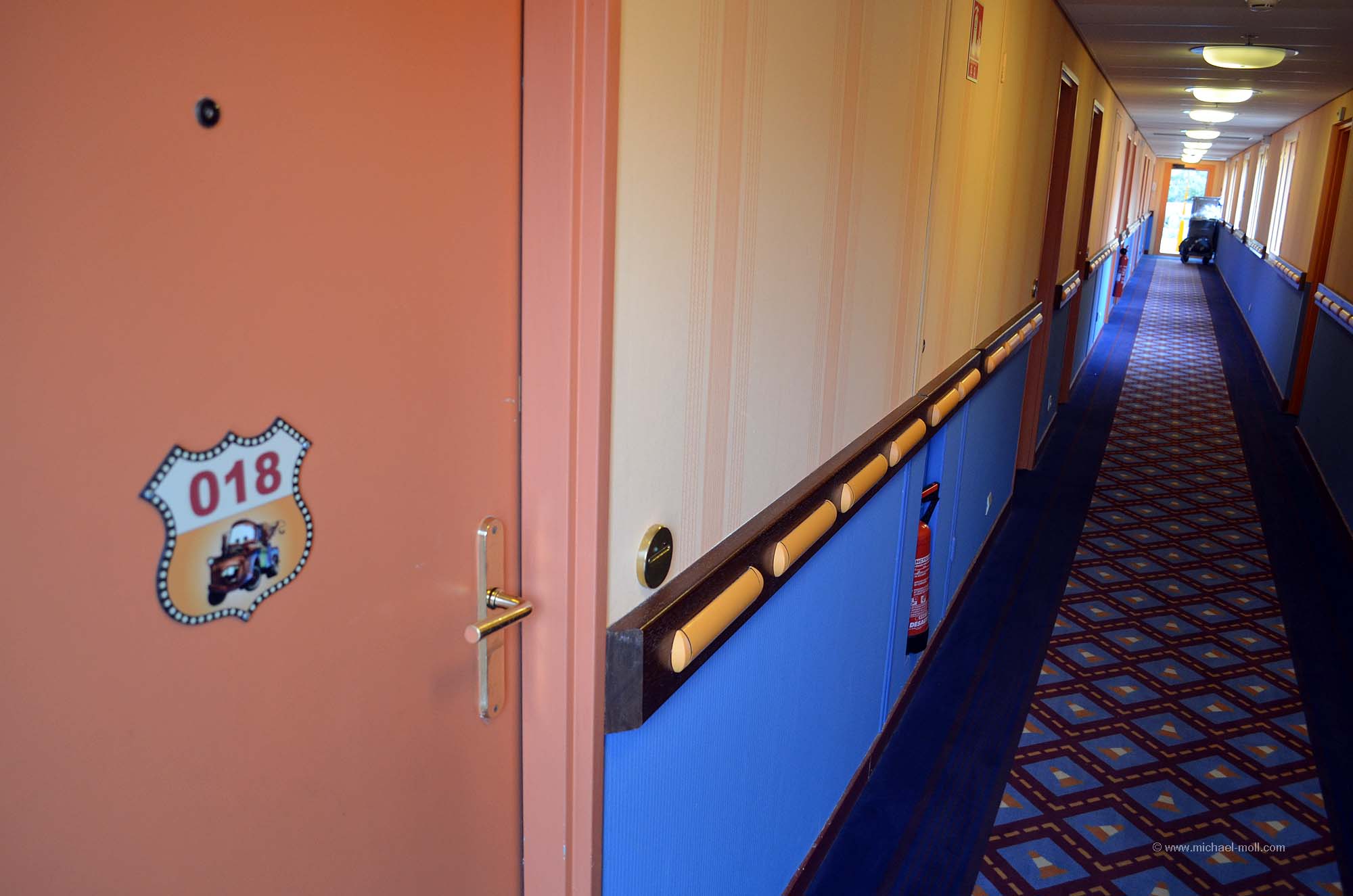 Am Freitagmorgen bekamen wir bei Hertz unseren Leihwagen, womit das grandiose Erlebnis schon seinen Anfang machte. Denn anstatt des bestellten Pkw erhielten wir gleich ein doppeltes Upgrade und damit ein Auto, dass zwei Fahrzeuglassen höher eingestuft wurde. Mit einem flotten SUV (Citroen C4 Aircross) düsten wir los und kamen rund fünfeinhalb Stunden später am Hotel Santa Fe im Disneyland Resort Paris an. Schon auf dem Parkplatz überkam uns eine gewisse Aufregung als auf einer riesigen Tafel Lightning McQueen aus Cars zu sehen war. Der Check-In im Hotel ging sehr flott und wir hatten wieder einmal Glück, denn wir erhielten Zimmer Nummer 18 in Haus Nummer 30. Das Hotel Santa Fe besteht nämlich aus mehreren Gebäuden und unseres beherbergte gerade einmal 8 Zimmer, was wohl ruhige Nächte versprechen dürfte. Außerdem konnten wir unseren flotten Flitzer direkt vor dem Fenster parken.